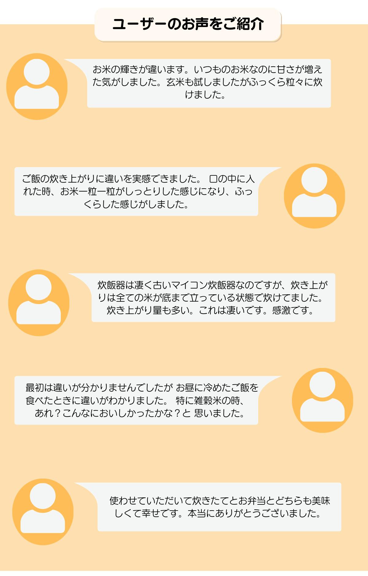 そんな悩みをお持ちの皆様へ、現在ご使用の炊飯器に置くだけでおいしいごはんが炊き上がります。