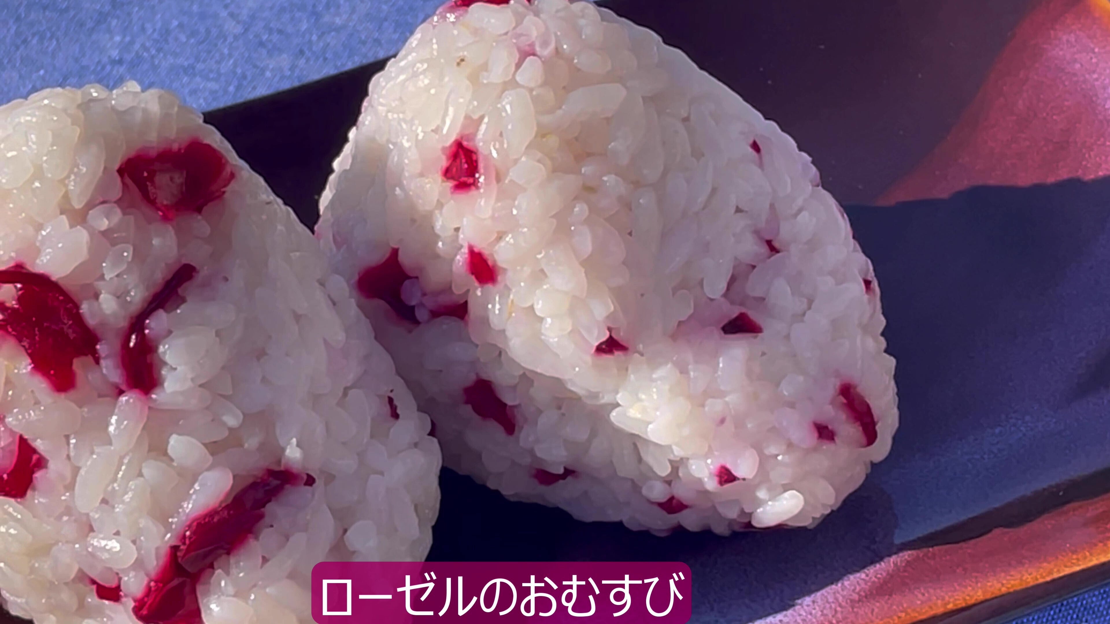 今回ご紹介するのは、「ローゼルのおむすび」です。生のローゼルだからこそ出来る、綺麗で美味しいおむすびです。作り方は超簡単!塩漬けにしたローゼルを、ご飯と混ぜて握るだけ。「ハーブ入りの『おむすび』なんてダメでしょ!」と思ったあなた!それは違います!ローゼルは和食との相性もバッチリなのです。梅に近い触感と味わいが、おむすびにぴったりなんです。是非一度試してみて下さい!!