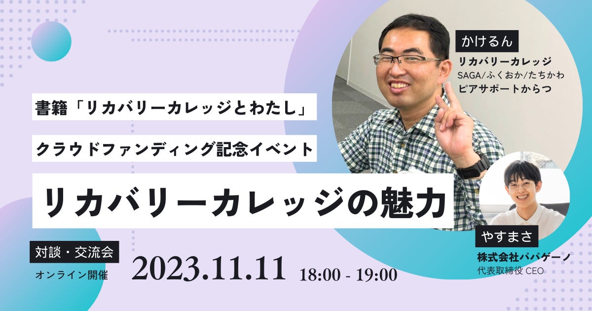 クラウドファンディング記念イベントとして、かけるんが当事者として感じた「リカバリーカレッジの魅力」についてお話します。モデレーターは、東京でIT系の就労継続支援B型事業所を運営する株式会社パパゲーノ代表の田中康雅(やすまさ)が務めます。