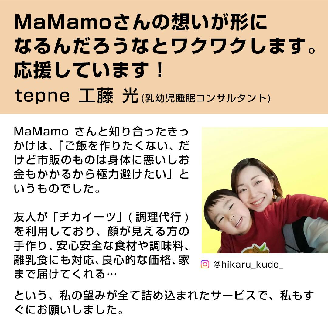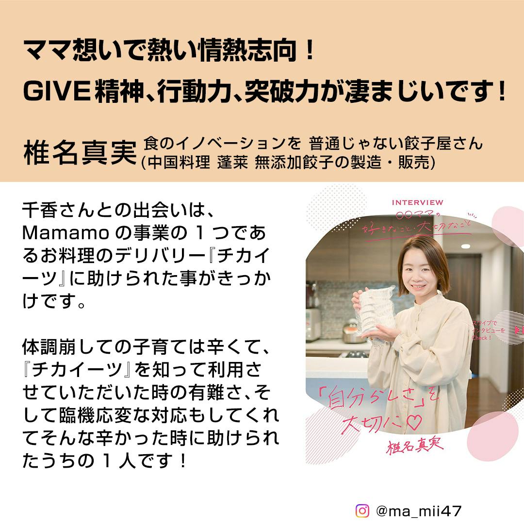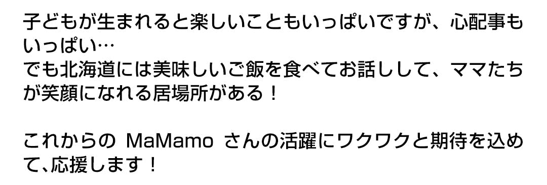 2024/03/15 20:00椎名真実様 からの推薦メッセージをご紹介します!*********千香さんとの出会いは、Mamamo の事業の1つであるお料理のデリバリー『チカイーツ』に助けられた事がきっかけです。体調崩しての子育ては辛くて、『チカイーツ』を知って利用させていただいた時の有難さ、そして臨機応変な対応もしてくれてそんな辛かった時に助けられたうちの1人です!料理のレパートリーも多くて子供にも配慮がされていて親としても安心が備わってるお料理達です。いつもそんなお料理をイベントやお店で食べれてしかも子供もゆっくりできるそんな居場所も作ってくれています!そんなママ達の場所を作りたい願いから行動し実現されてる突破力は素早くて夢を現実にさせちゃう実力の持ち主だと私は思ってます!私も食でママ達を救いたい想いから出来た『無添加餃子』も千香さんは応援団長でもありすぐさまお店のレパートリーにも加えていただきました!千香さんは利他精神も持ち合わせたママ達の応援団でもあり子供達の未来の為にと行動されている情熱溢れた人です!応援したくなっちゃう1人です!Instagramhttps://www.instagram.com/ma_mii47/*********メッセージありがとうございました!真実 さんにご協力いただいた無添加餃子のリターンも本日限りです!無添加餃子リターン《商品詳細》・発送方法:クール冷凍便・保存方法:冷凍・賞味期限:製造から1ヶ月無添加餃子1Pリターンはこちら無添加餃子MaMamo のクラウドファンディングは本日3月15日23時59分59秒までになります想いを動画にしました札幌を子育てがしやすいまちにしたい。ママが我慢しないで当たり前のように 自分の人生を選択できるためにMaMamoは活動してまいります。想いを動画にしました!++++ ~おすすめリターンのご紹介です~・起業家ママ ご相談オンライン 3ヶ月 残り5名 お申込はこちら++++イベント情報◇ ボタニー×ディンプル ワークショップ(クラウドファンディング特別イベント)開催日:2024年3月29日(金) 10時00分~15時00分(予定)開催場所:MaMamo ※20家族限定費用:10,000円(この料金でご家族全員ご参加いただけます+おにぎりとMaMamo特製豚汁つき )お申込みはこちら もっと見る
