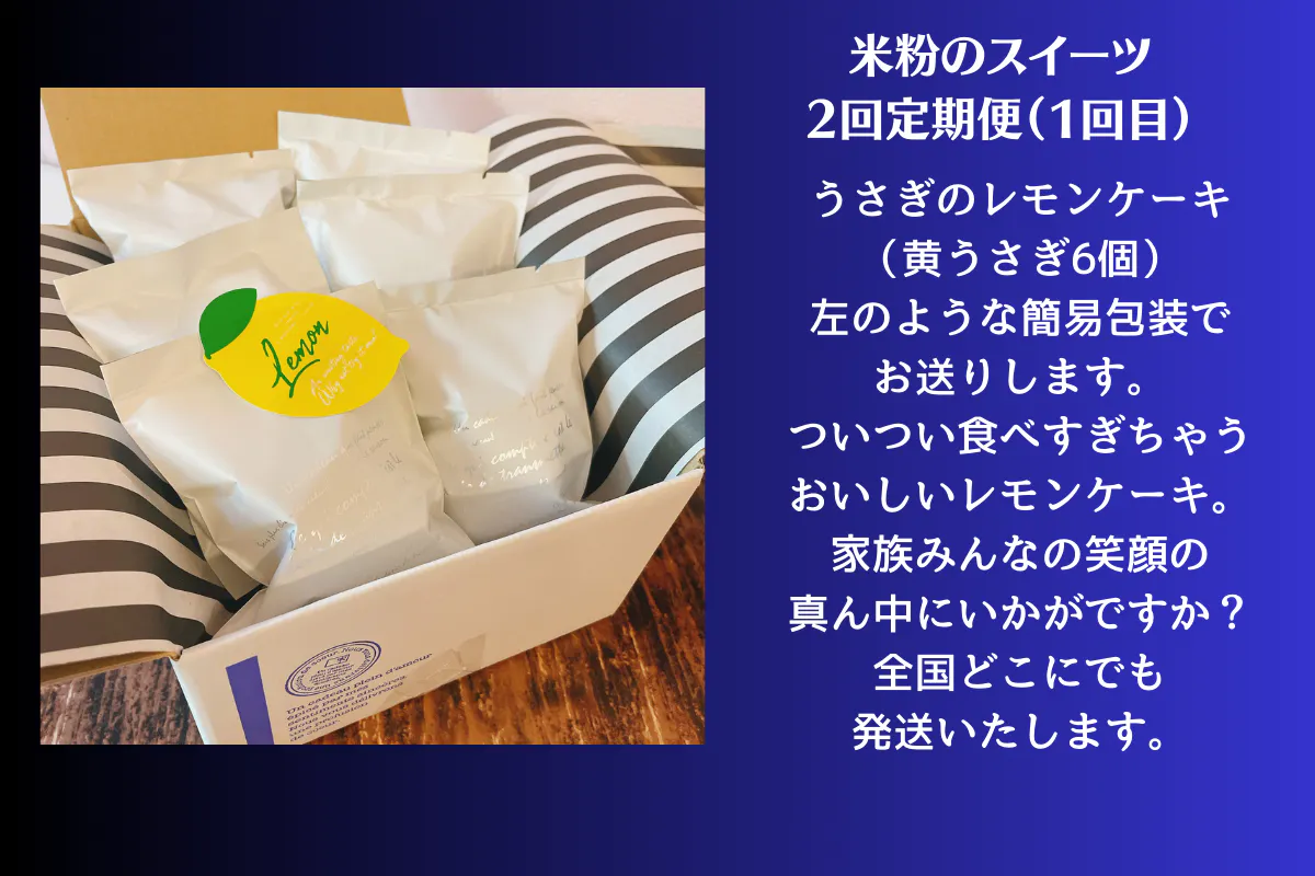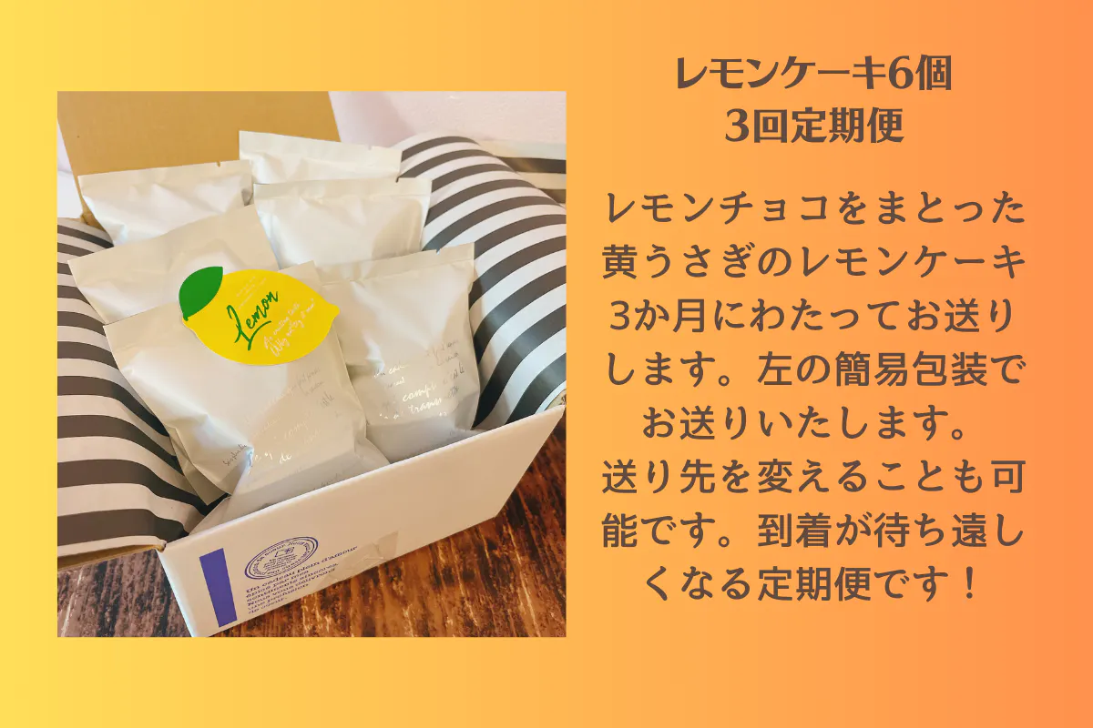2024年1月、2024年2月、2024年3月(うさぎのレモンケーキ6個*黄うさぎ)の3回定期便です。