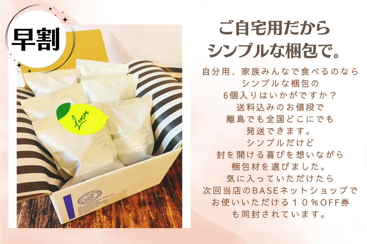 早割・簡易包装(送料込み・10%引き)自分用だから箱はいらない、という方むけに簡易包装で発送します。