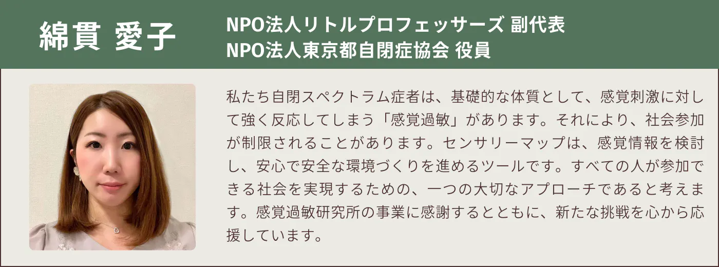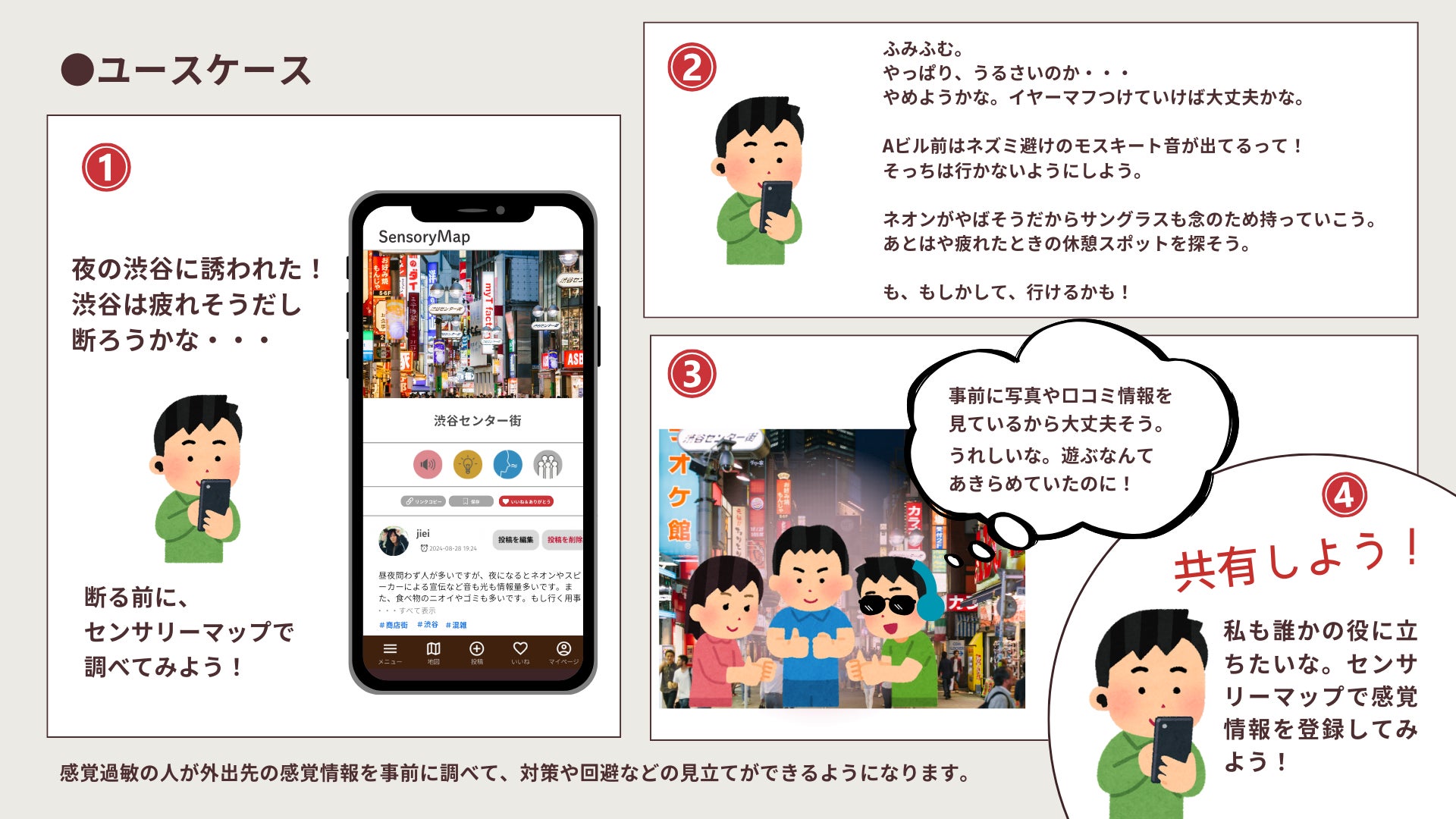 このように、センサリーマップは感覚過敏の方々だけでなく、日常生活の中で静かで快適な場所を求めるすべての人々にとって役立つツールになると考えています。