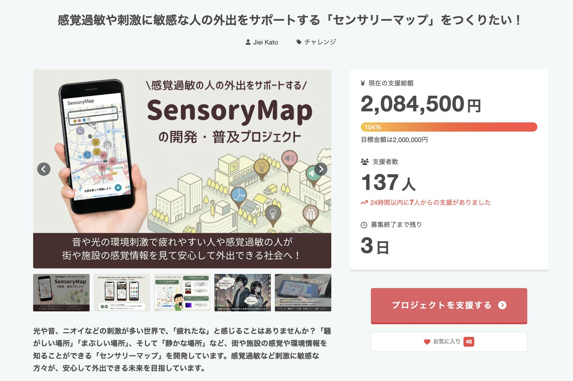 プロジェクト自体は、1月17日(金)23:39まで募集しております。1人でも多くの人にセンサリーマップについて知っていただけるように、引き続き発信していきたいと思います。