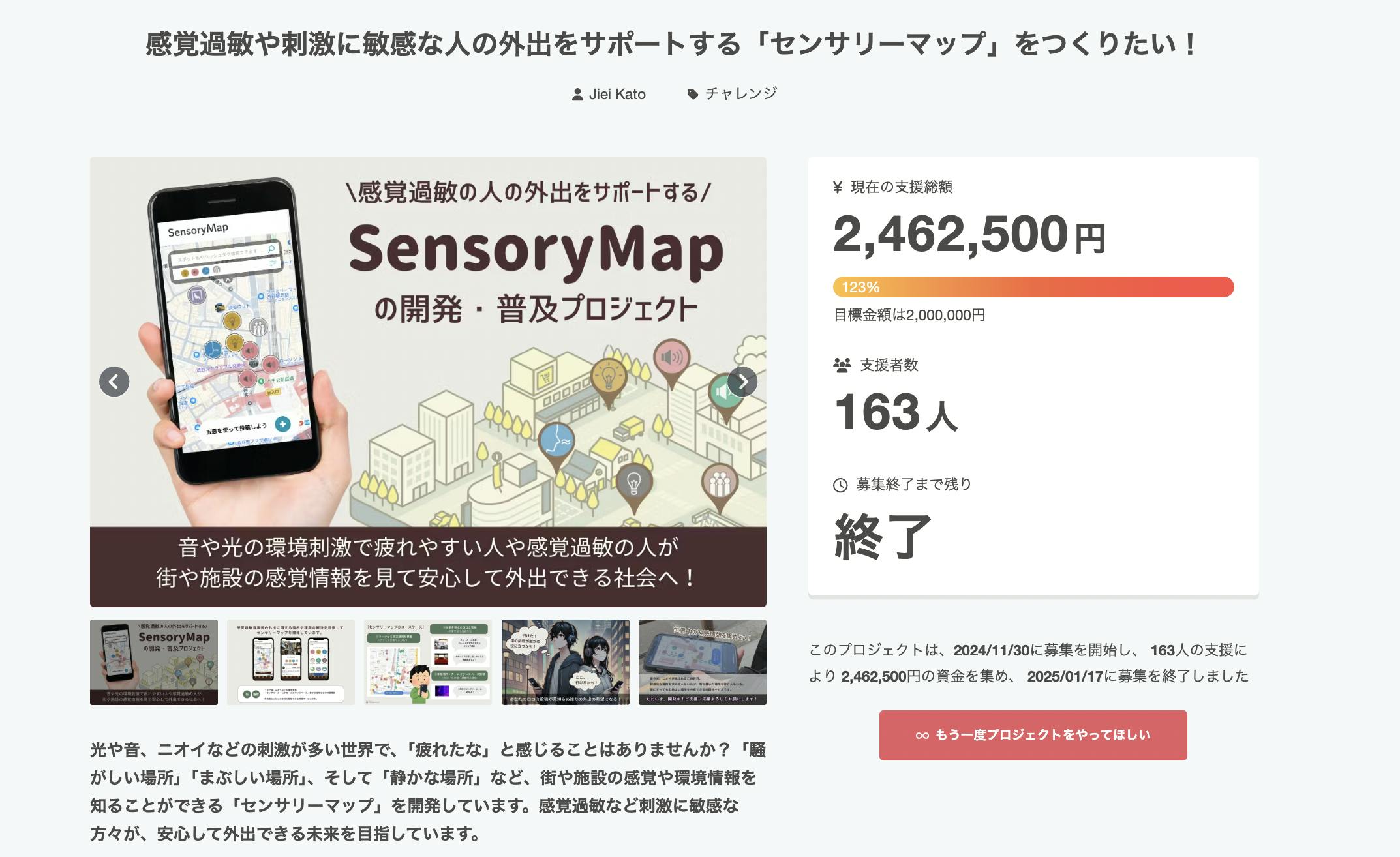 感覚過敏研究所の加藤路瑛です。2025年1月17日に、センサリーマップ開発のためのクラウドファンディングの募集が終了しました。