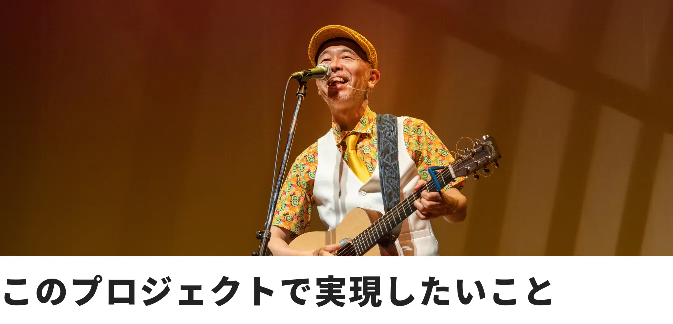 僕は誰でも知っているような有名人ではないので、チケットを売るのも大変なこととは思いますが、その場所ならではのコンサートが必ずできます。みんなのところに歌を届けたい、その思いでこのクラウドファンディングを成功させたいと思います。よろしくお願いします。