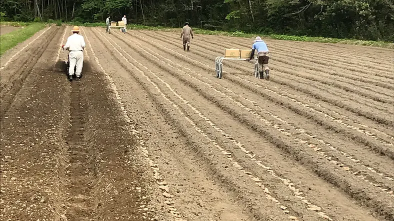 (マルチには圃場の刈り草を使っています。殺菌剤や殺虫剤などの農薬、除草剤、化学肥料、有機肥料すべて不使用。作物内の未消化肥料、残留農薬、ホルモン剤、抗生物質、放射性物質に配慮しています。)