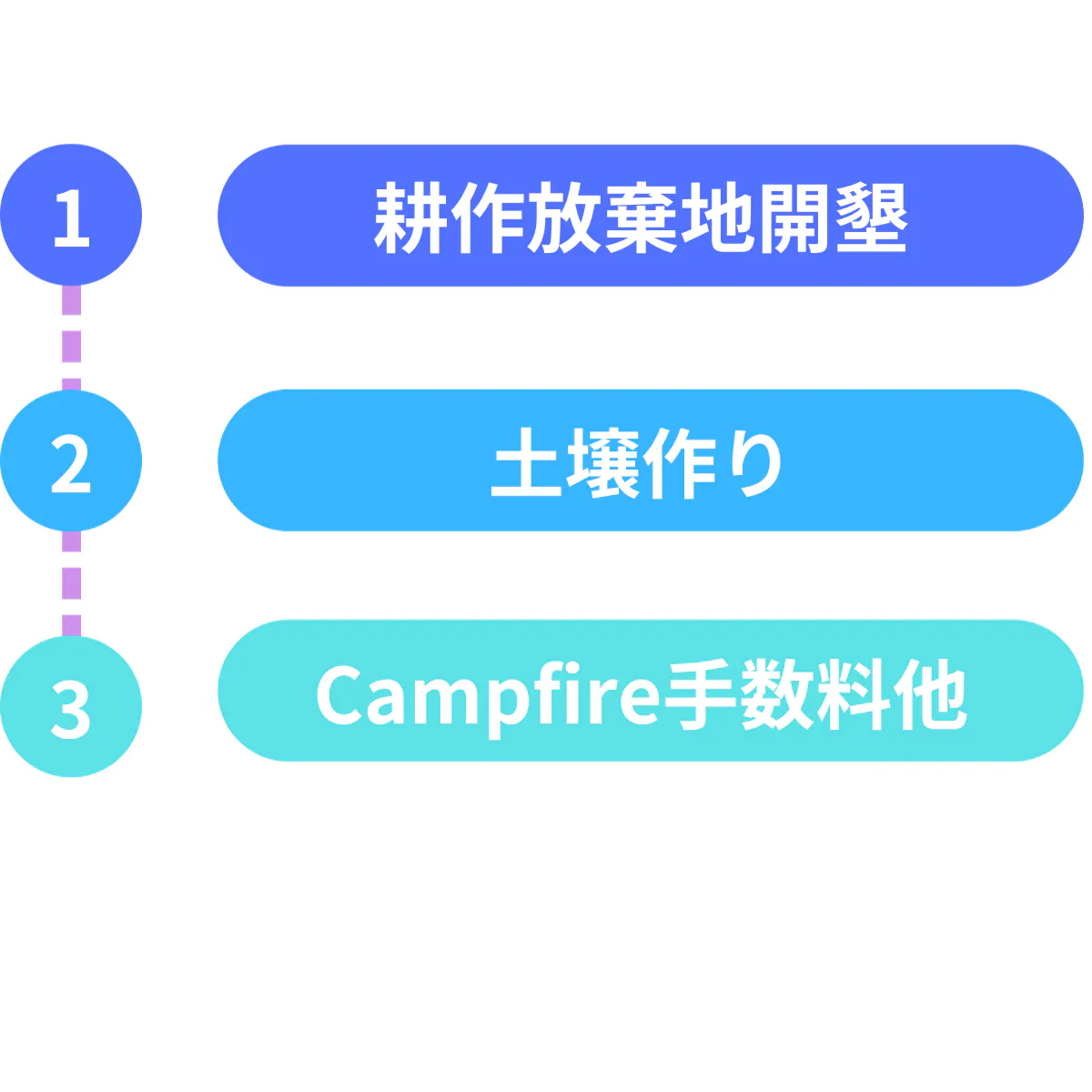 皆様よりご支援いただきました資金については、耕作放棄地開墾、土壌作り、campfire手数料やその他告知費用等に活用させていただければと存じます。