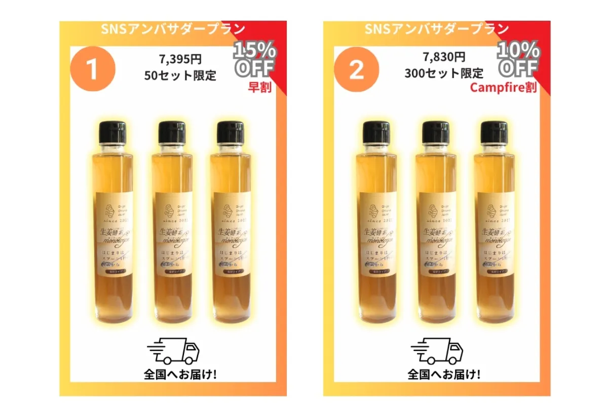 このプロジェクトは、多くの方々のご支援と協力が必要です。私たちは、自然栽培農薬不使用の生姜を使って自然な味わいの生姜酵素をお伝えし、冬を乗り切るための健康飲料として広めたいと考えています。皆さんのご支援を心からお待ちしております。
