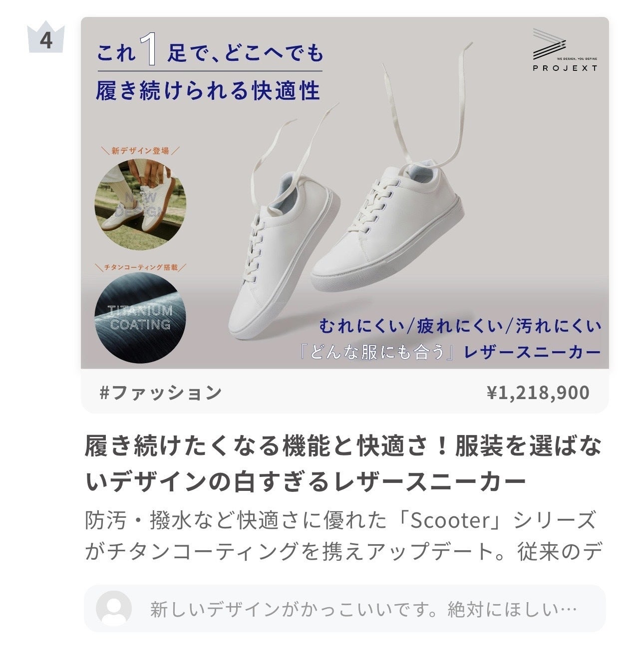 皆様、こんにちは!いつもご支援誠にありがとうございます。今回、私たちの誇るレザースニーカー「One Relax」と「All Faith」の実際に使ってみた、レビューが人気ウェブマガジン【ライフハッカー】にて掲載しております。https://www.lifehacker.jp/article/machi-ya-scooterallfaith-review2-714339/ぜひご確認ください。--また本日は、「One Relax」および「All Faith」のインナーに採用されているHunterTex社の「チタンコーティング」について本日はご紹介します!◎ チタンコーティングについてアレルギーが起きづらい、比強度が高く、錆びづらいなど、高いスペックを誇るチタン。HunterTex社は培った半導体技術を応用してテキスタイルの分野でチタンコーティングを実現しています。 「One Relax」と「All Faith」では、シューズのインナー部分にチタンコーティングを施した素材を採用しています。さまざまな効果が期待できますが、シューズとして特筆すべきは抗菌性*。抗ウイルスや抗菌などの結果がテストでは出ており、ニオイの原因となる菌の繁殖を抑えてくれます。※抗ウイルス(H1N1)活性率:99.72%※黄色ブドウ球菌減少率:99.9%※肺炎桿菌減少率:99.9%これは、テンセルや和紙で作られたインソールとも相性が良いので、日常や、通勤・通学使いの方にも嬉しい仕様です!◎エアコーティングについてまた、HunterTex社のコーティング技術も特筆すべきポイントがあります。独自のエアコーティング技術を用いて、機能性材料(チタン)を霧化しています。生地や繊維の表面への密着性を高め、分子グレードの機能性コーティングにより軽量なだけでなく、生地や繊維本来の特性や風合いを損なうことなくコーティングを実現。一般的なコーティングと比べて、エアコーティングでは生地の目を塞ぐことなくコーティングを施すことができ、通気性を保ったまま機能性を付与することができますよ。先端技術のチタンコーティングが搭載された「One Relax」「All Faith」ともに、機能性スニーカーと呼ぶにふさわしいスペックを備えています。ぜひお買い求めください!>>プロジェクトページはこちらからhttps://camp-fire.jp/projects/view/714339