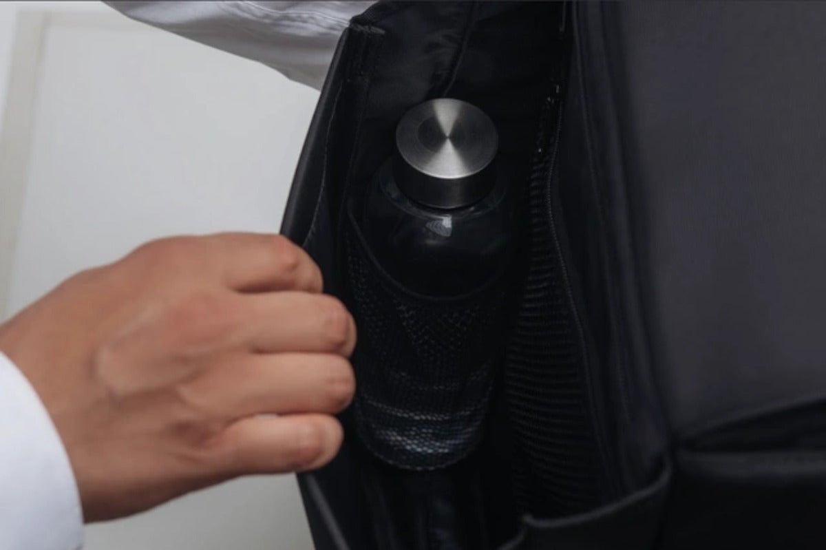 通常は、バッグの側面にあるドリンクホルダーもあえて内部に設置。