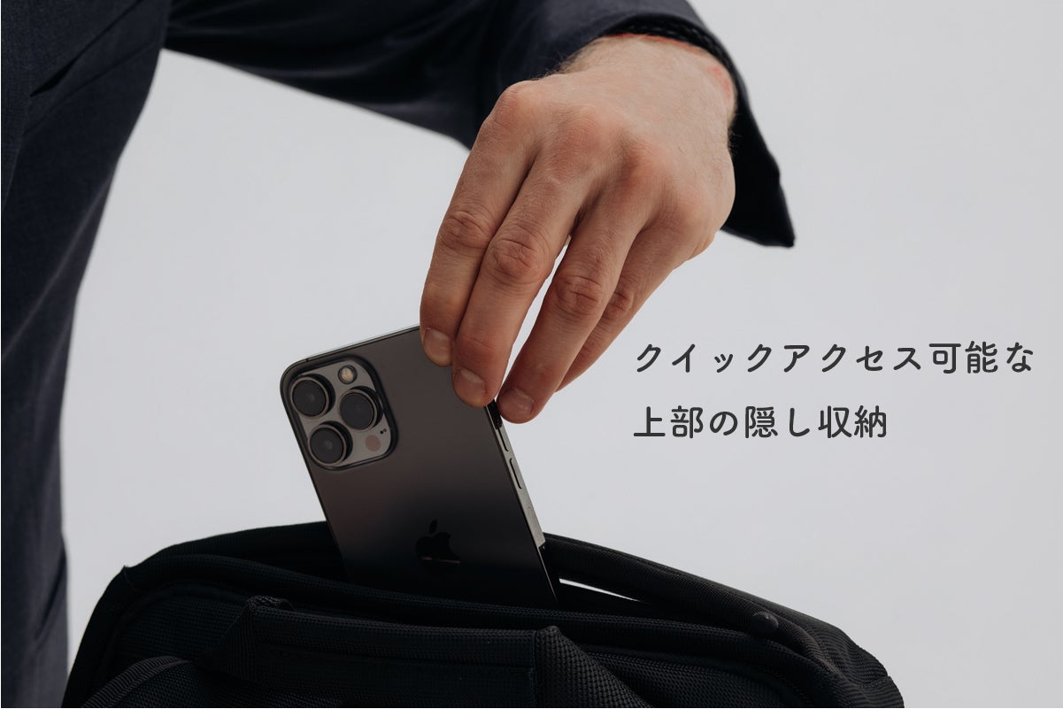 メインポケットを開くことなく取り出し可能な上部シークレットポケット!