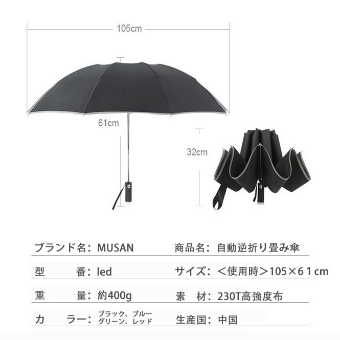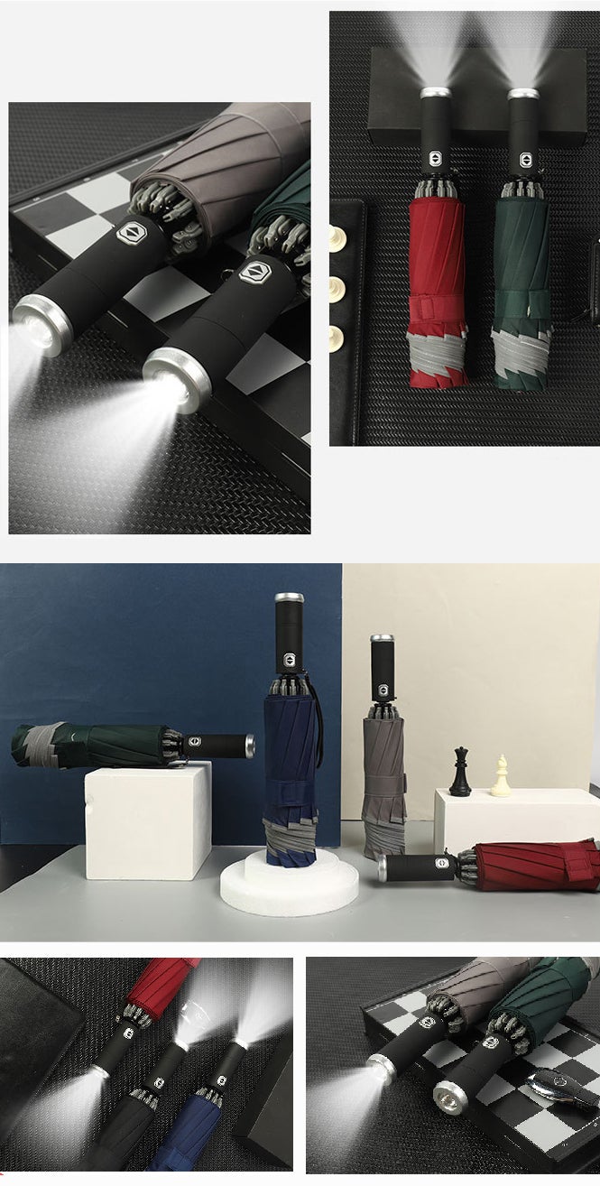 高級折りたたみ傘でも、190Tの密度の生地を採用するのが一般的で、ledは、高い密度210T生地を採用しました。密度が高いほど、加工プロセスが複雑になり、撥水効果も強くなります。