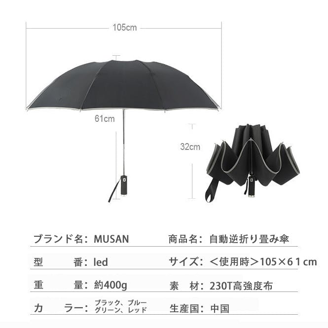 急な大雨に立ち向かうには、十分なサイズも必要です。ledは直径105cmとかなり大きめのサイズとなっているため、背中が濡れてお困りだった方にもおすすめです。