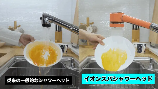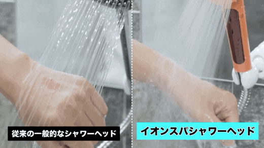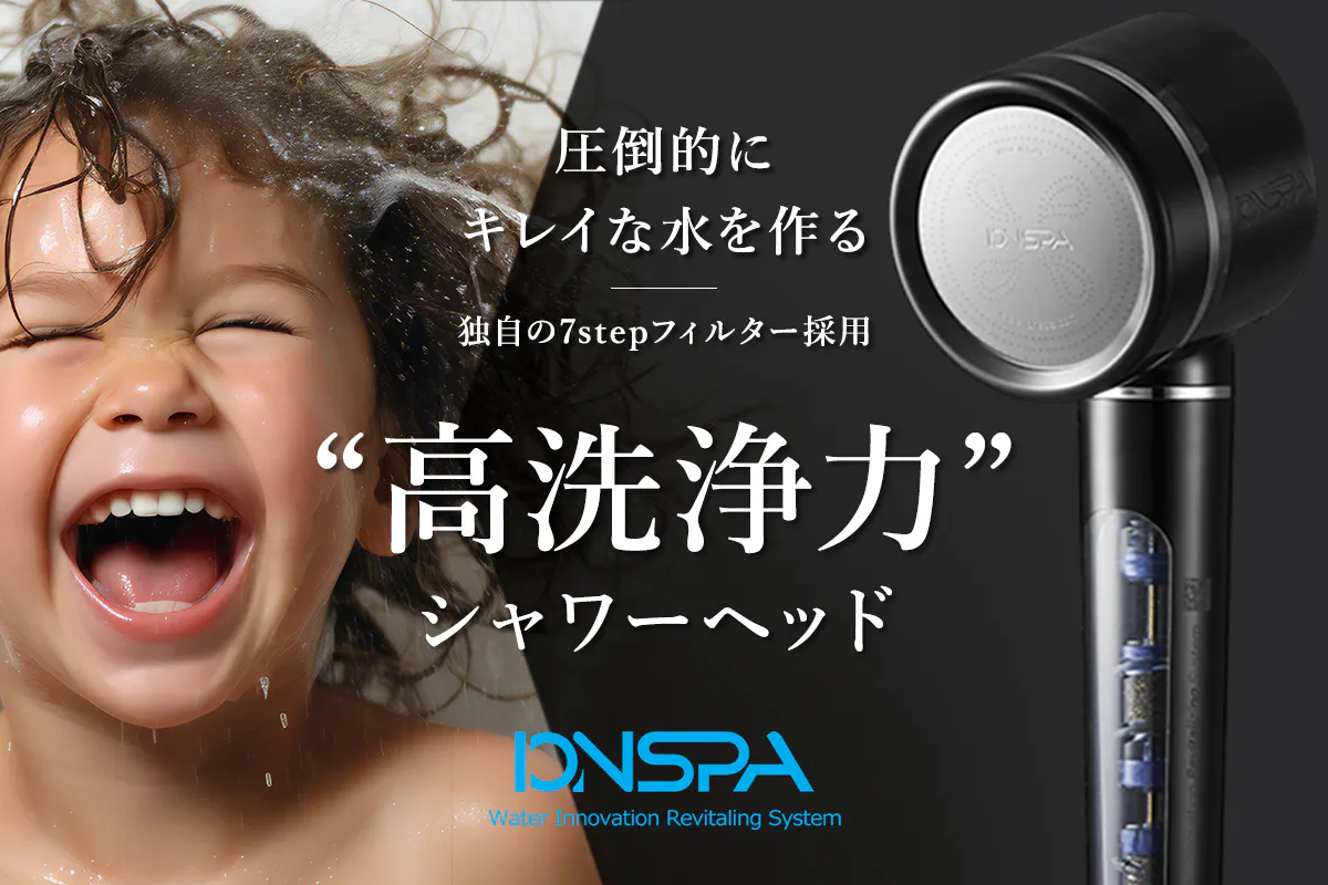 イオンスパのシャワー水は非常にきめ細かく、高い洗浄力を持っています。