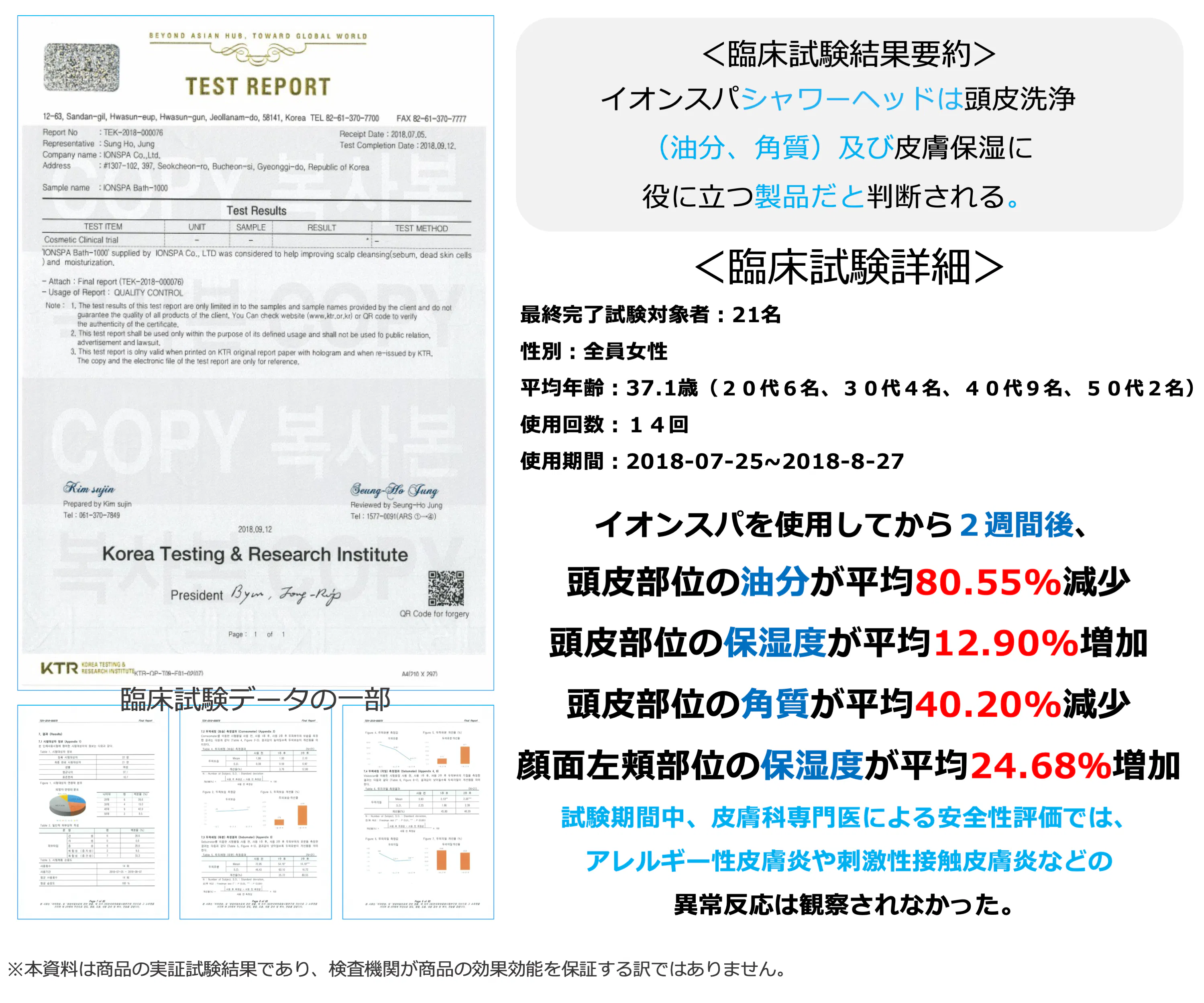 ・頭皮と肌に対する人体適用臨床試験データ