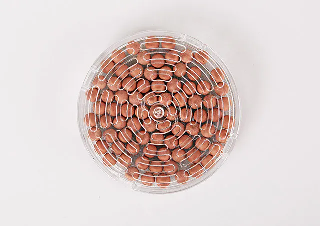 イオンスパのフィルターに使われている天然ポゾランボールの高級ゲルライトは500倍に拡大しても火山石結晶がそのまま見えるほどきめ細かく、高いフィルター能力が期待できる天然素材です。