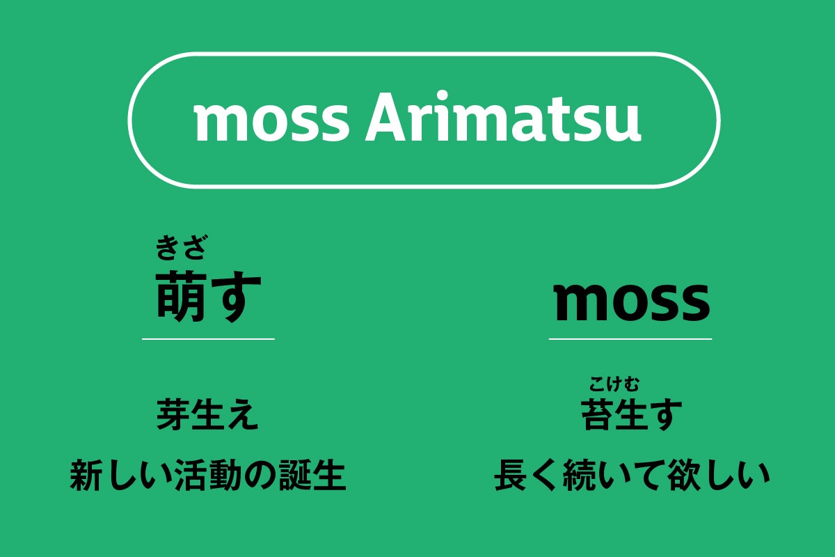 moss/モスという名前には、「moss = 苔むす」と「萌す(きざす)=芽生え」という2つの意味を込めています。新たなチャレンジを応援し、継続的な活動や事業が有松に根付くことを期待しています。