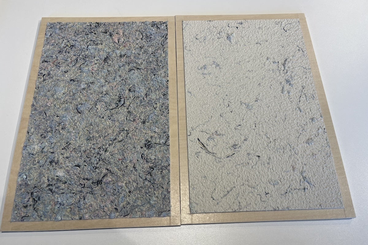 日本エムテクス株式会社が開発する、廃棄繊維を混ぜた左官材のNURU DENIMの材料の一部に有松のくくり糸を使用してもらっています。