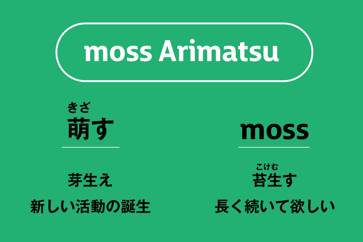 moss/モスという名前には、「moss = 苔むす」と「萌す(きざす)=芽生え」という2つの意味を込めています。新たなチャレンジを応援し、継続的な活動や事業が有松に根付くことを期待しています。