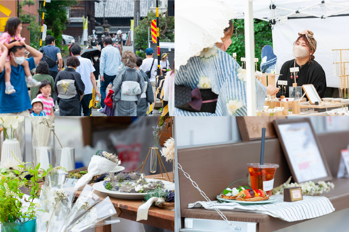 そこで、ありまつ中心家守会社は「つくりながら暮らすこと」を掲げて活動し、主たる事業として①(空き家を含む)遊休資源の利活用、②地域のにぎわいづくり、③情報発信やブランディングの支援にこれまで取り組んでまいりました。コロナ禍に大打撃を受けた絞り産業の従事者らを中心に開催する「有松絞りまつり」などの地域振興イベントでの広報活動や事務局の運営。参加者とともに地域の魅力を探り、空き家などの活用案を探るまちづくりワークショップ。年3回の定期的なものづくり文化体験型マルシェ「アリマツーケット」の開催などをおこなっています。