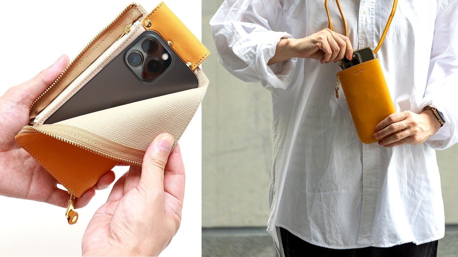 「スマホポーチ」と「L字長財布」を一体化