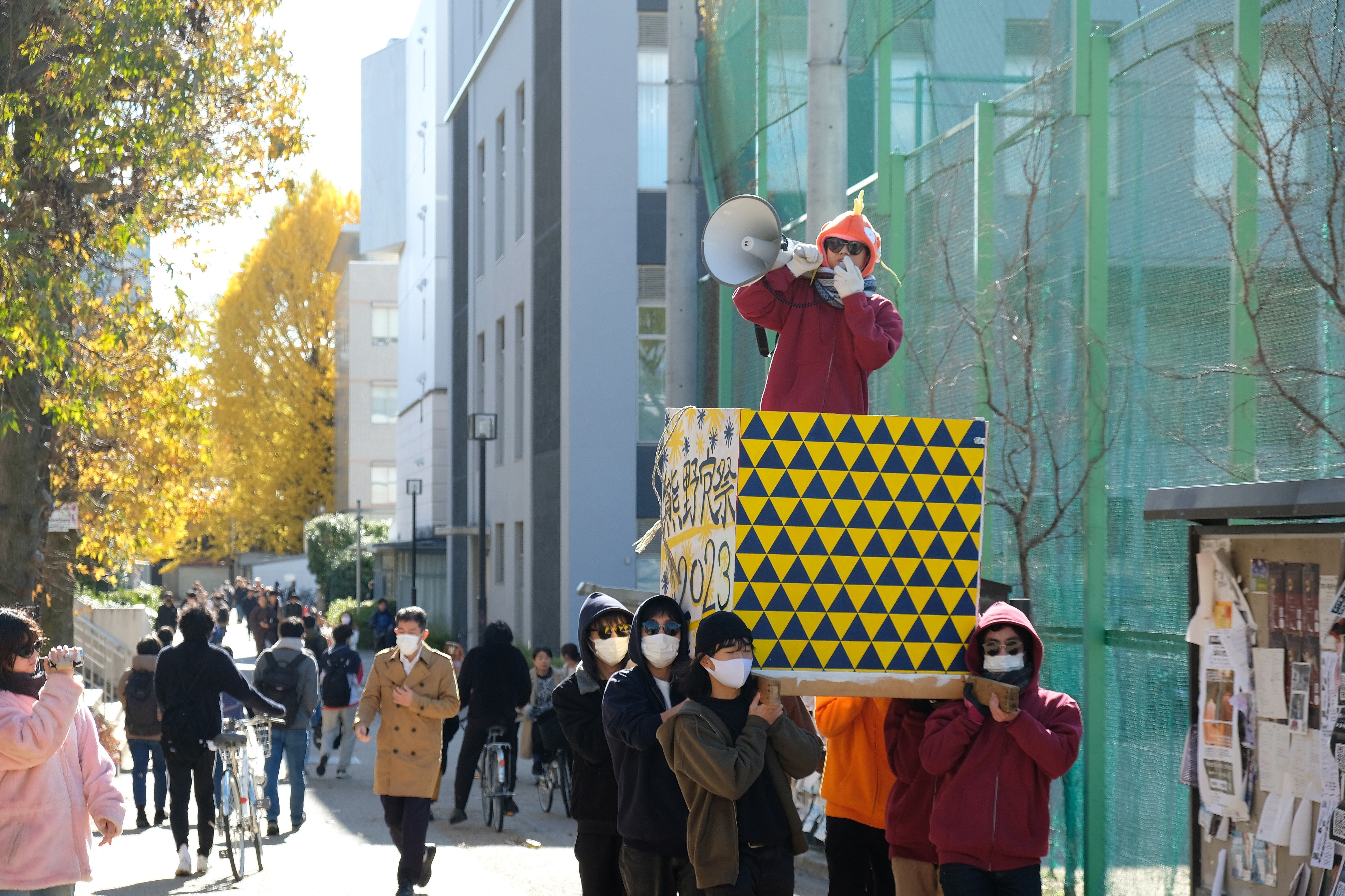 熊野寮祭ついに開幕ました!投稿が遅くなりましたが、時計台コンパによる疲れのためです。ご容赦ください。さて、一番上の写真ですが時計台コンパの開幕を宣言したときの鏡開きの写真です。アングルといい、光の具合といい、最高の一枚ですね、いつかこの写真が覆面なしで撮れる日が来ると信じています。今年の時計台コンパはねるねるねるねをライブで制作したり、パレード行ったりと色々としましたが、思っていたよりも弾圧が穏便で、当局も熊野寮祭に寛容になってきたように感じました。下はパレードの写真です。そのほかにも1日目はたくさん企画がありました。その様子は来年の熊野寮祭クラウドファンディングまで持ち越しにしようと思います。