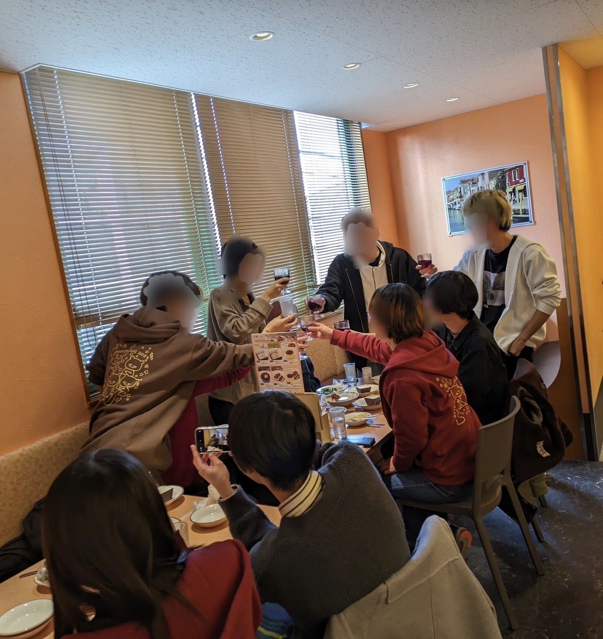 百万遍のサイゼリアで、みんなでご飯を食べるという企画です。それだけと思うかもしれませんが、20人くらいでご飯を共有すると、満足感が半端なかったです。また、いつもは絶対頼まない料理も色々頼み、コレそんなおいしかったんだと、サイゼリアを開拓できました。