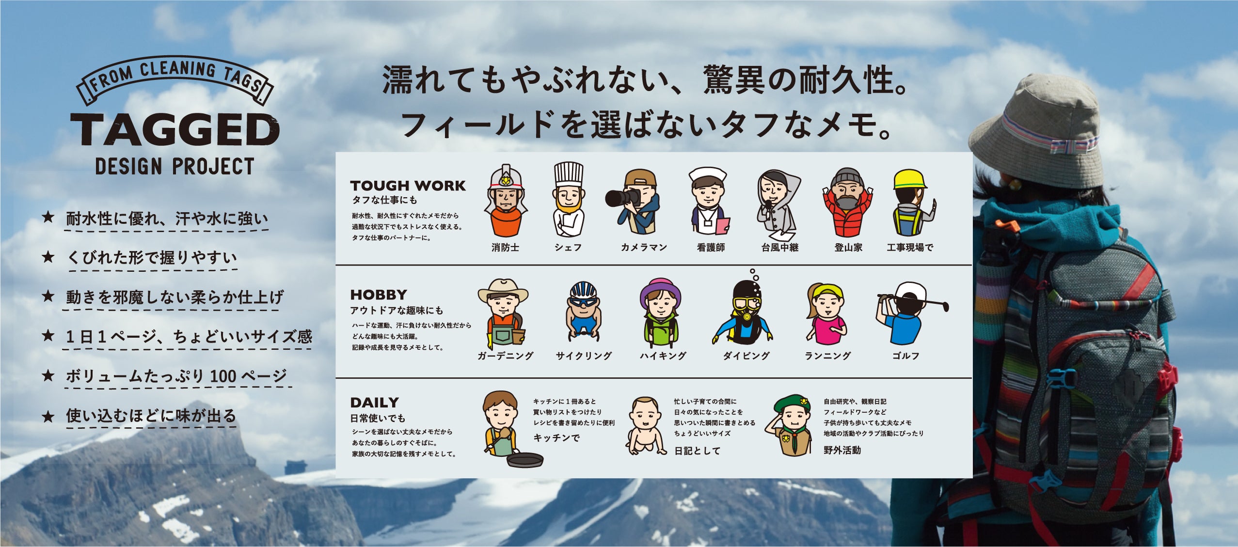 こうして文具デザイナーとコラボして出来たのが、タフにラフに使える濡れても破れないメモ「TAGEED LIFE GEAR」です。