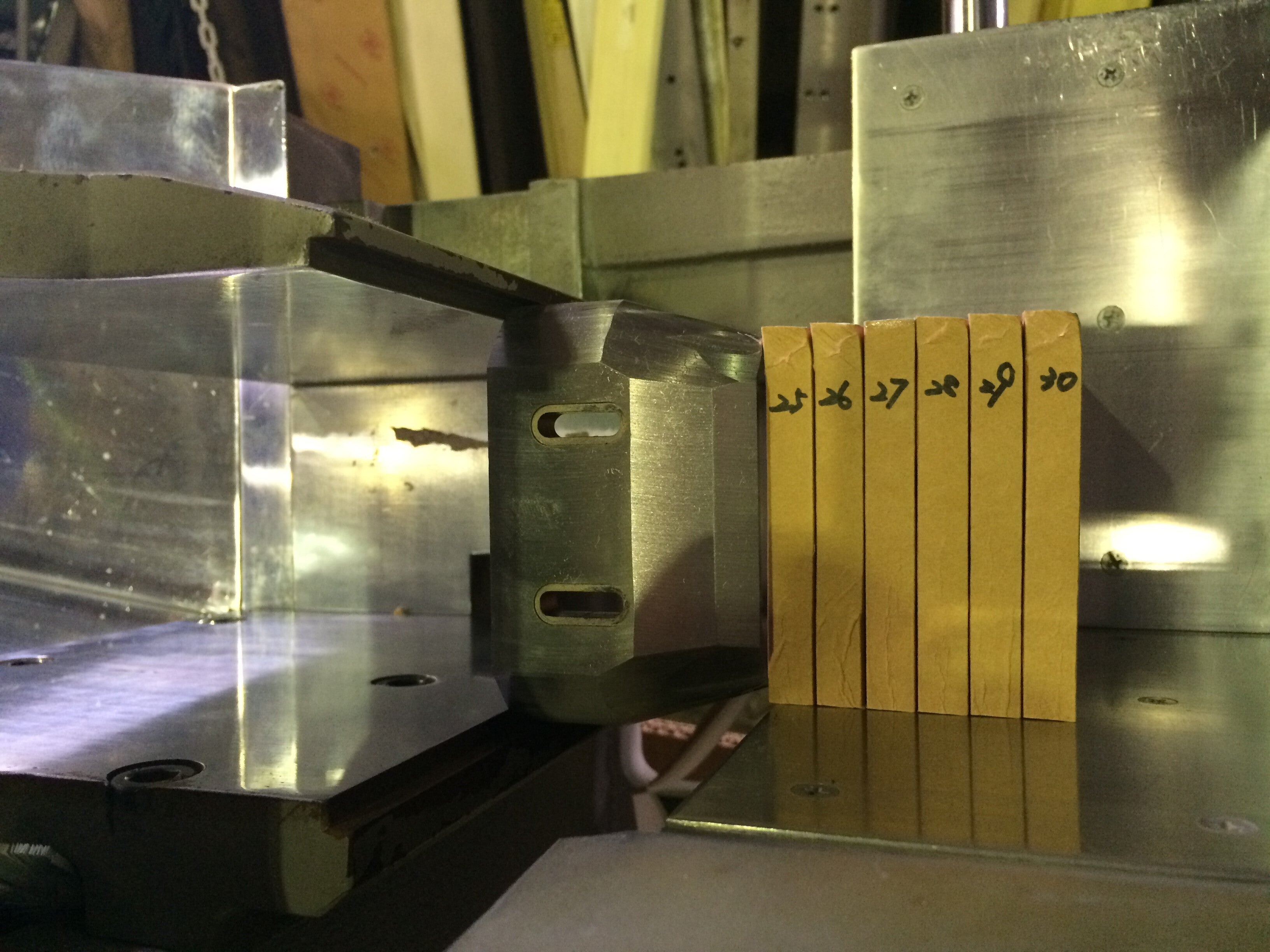 こちらでも油圧の抜き機を作るメーカーから機械を借りて、半年をかけ、色々な型抜きのスピードや厚みを変えながらキレイな抜きができるまでテストを何度も何度も繰り返しました。