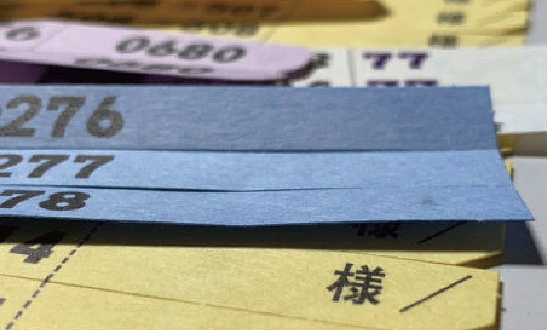 皆さんがクリーニング店を利用した衣類には、番号のついた色紙が付いていますよね?