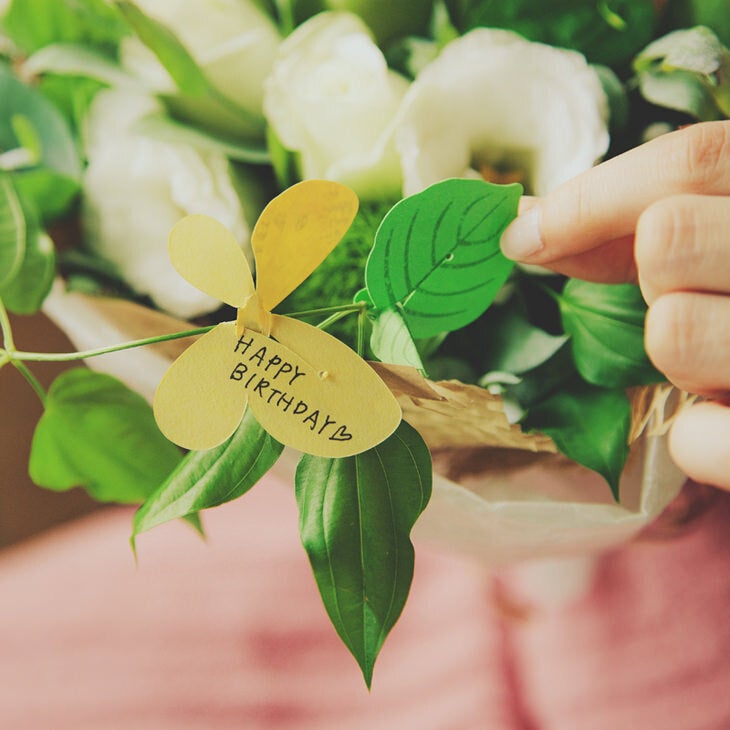 葉の形や蝶々の形をしたこのデザインメモは、従来のフィルムでできた植木鉢に差し込むネーム札ではなく、風に飛ばされず書き込みができる紙のプランツタグです。