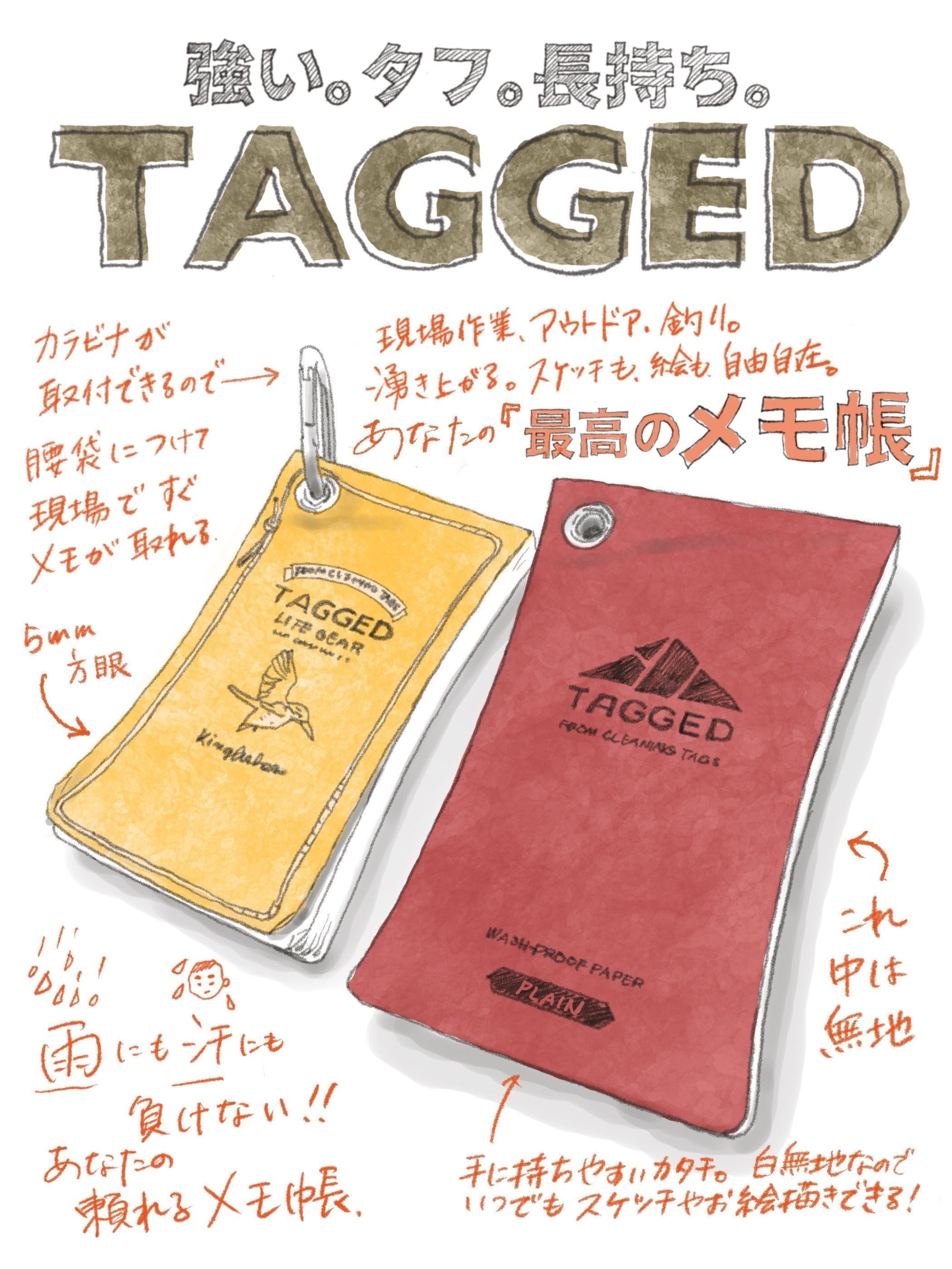 こうして文具デザイナーとコラボして出来たのが、タフにラフに使える濡れても破れないメモ「TAGEED LIFE GEAR」です。