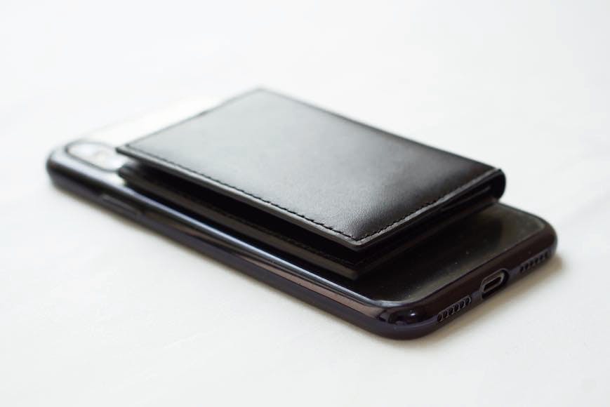スマホに張り付けて所有する”スマホ一体型の財布”です。