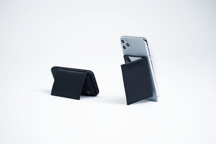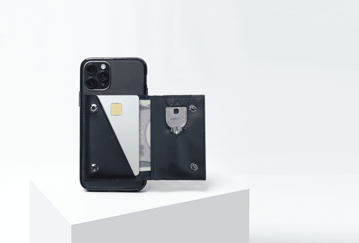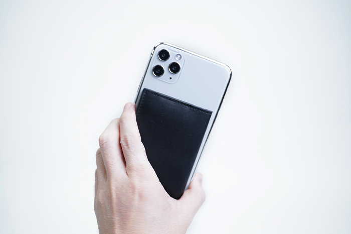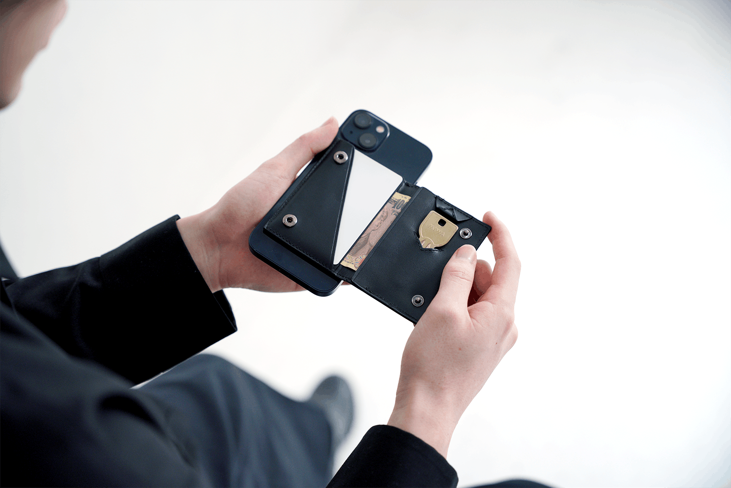 スマホに張り付けて所有する”スマホ一体型の財布”です。