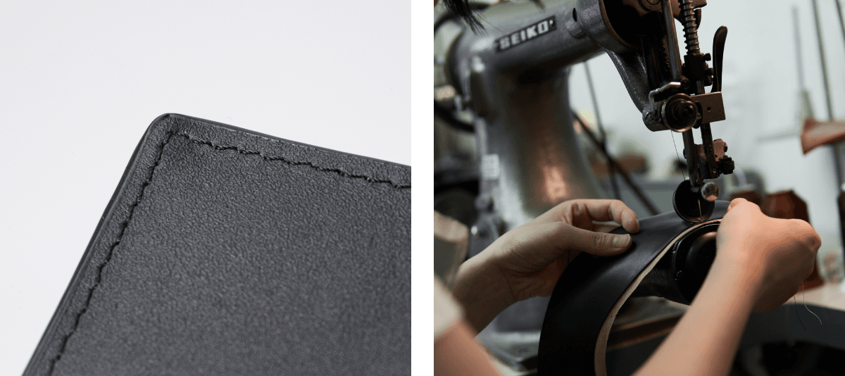 デザインを損なわないよう、電磁波防止シートをレザーとレザーの間に埋め込み、外から見えない設計になっています。