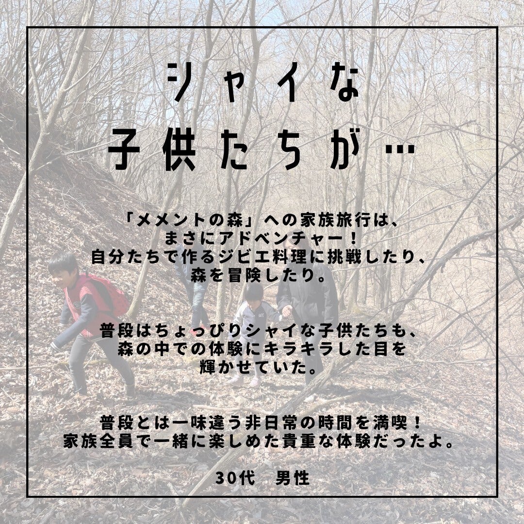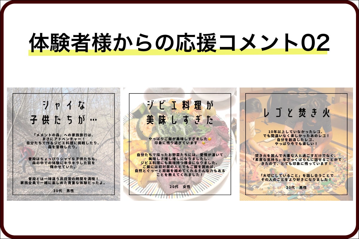 さて、今回も前回に引き続き、過去にメメントの森を体験いただいた参加者様からの応援メッセージをご紹介させていただきます。