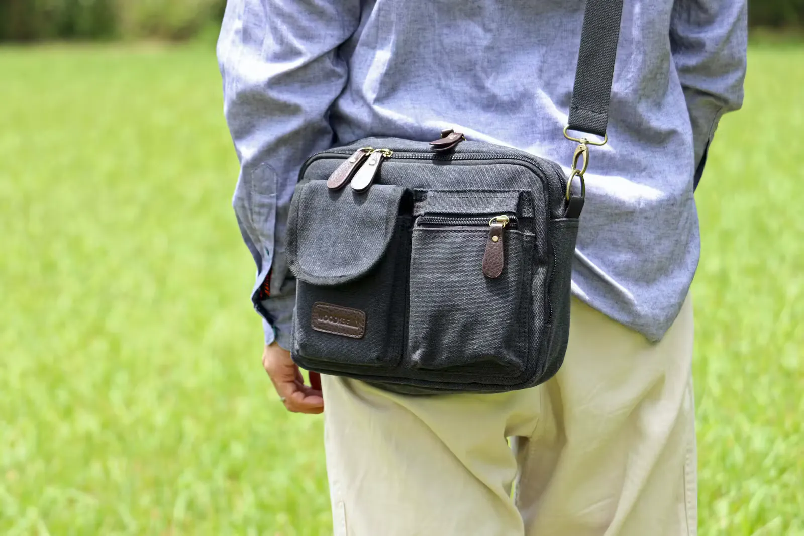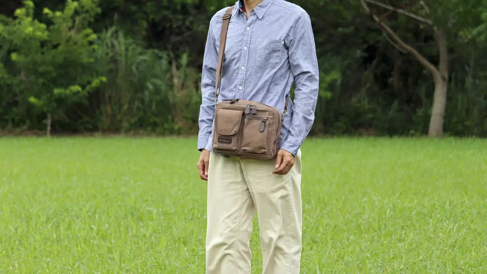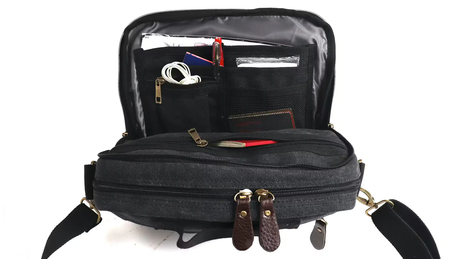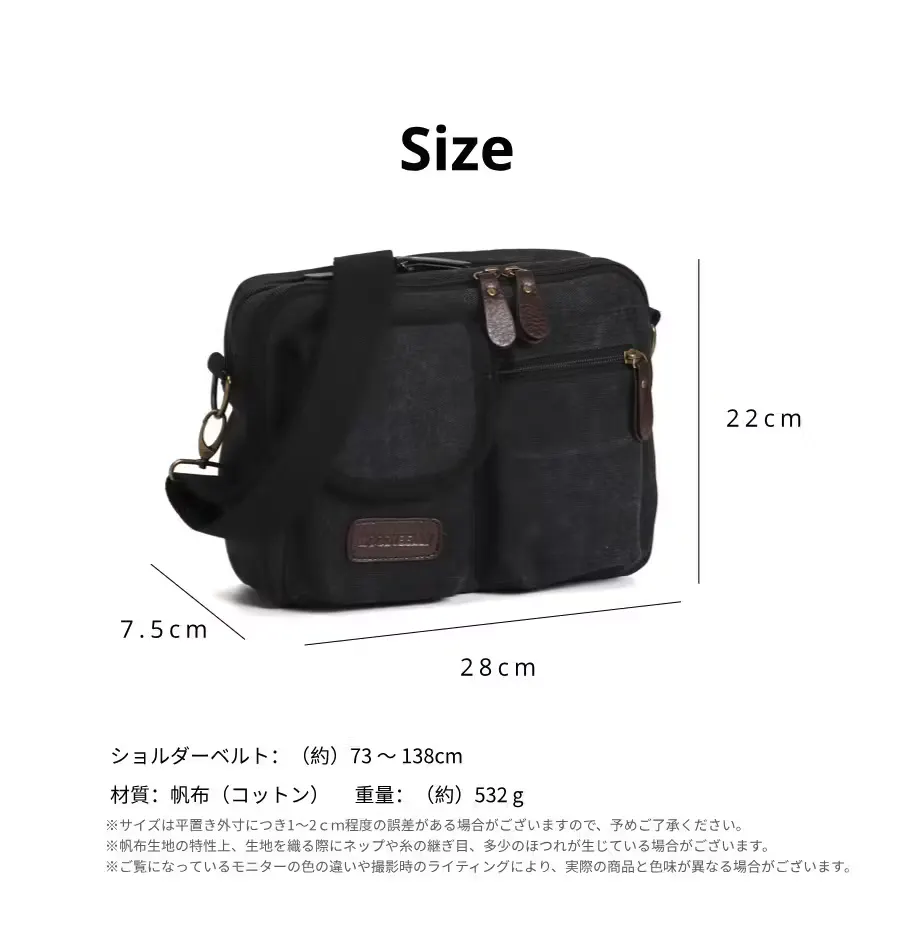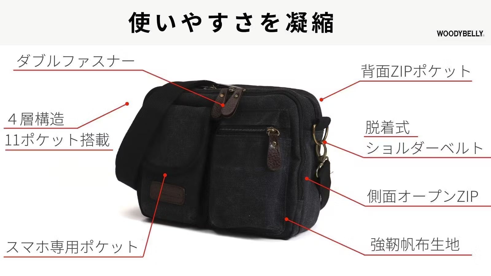 スマホ・ガジェットに即アクセス。分別整頓できる4層構造!軽量帆布ショルダーバッグ