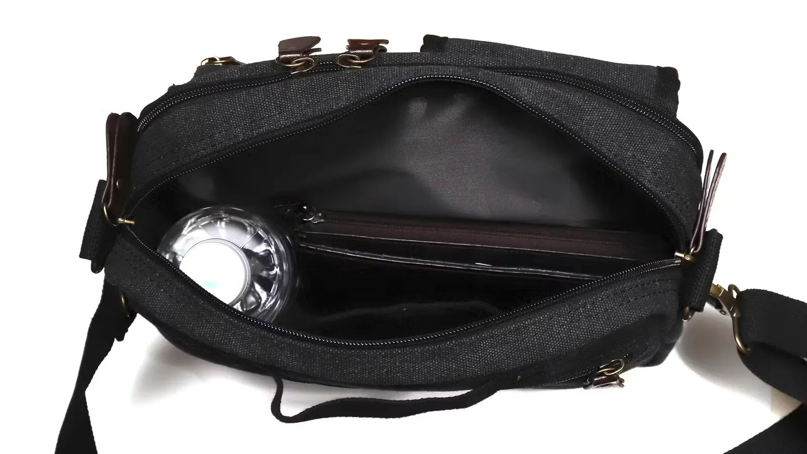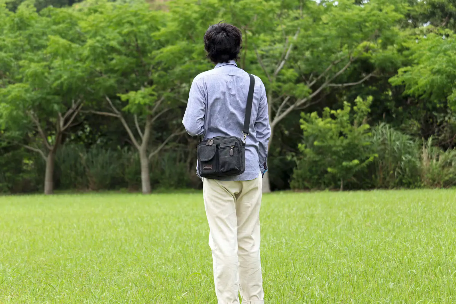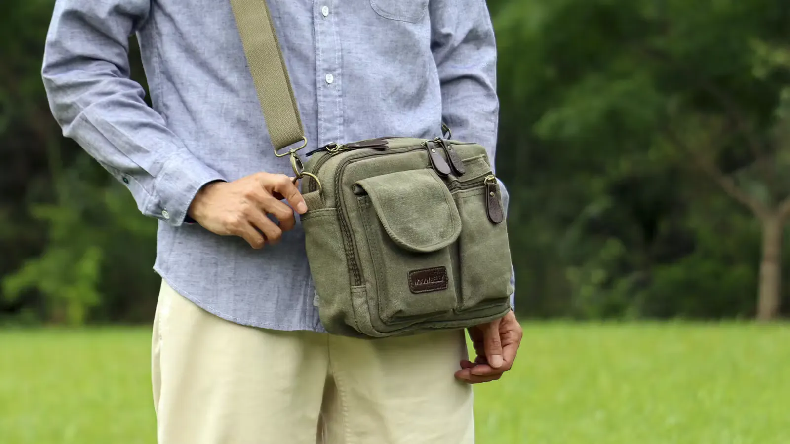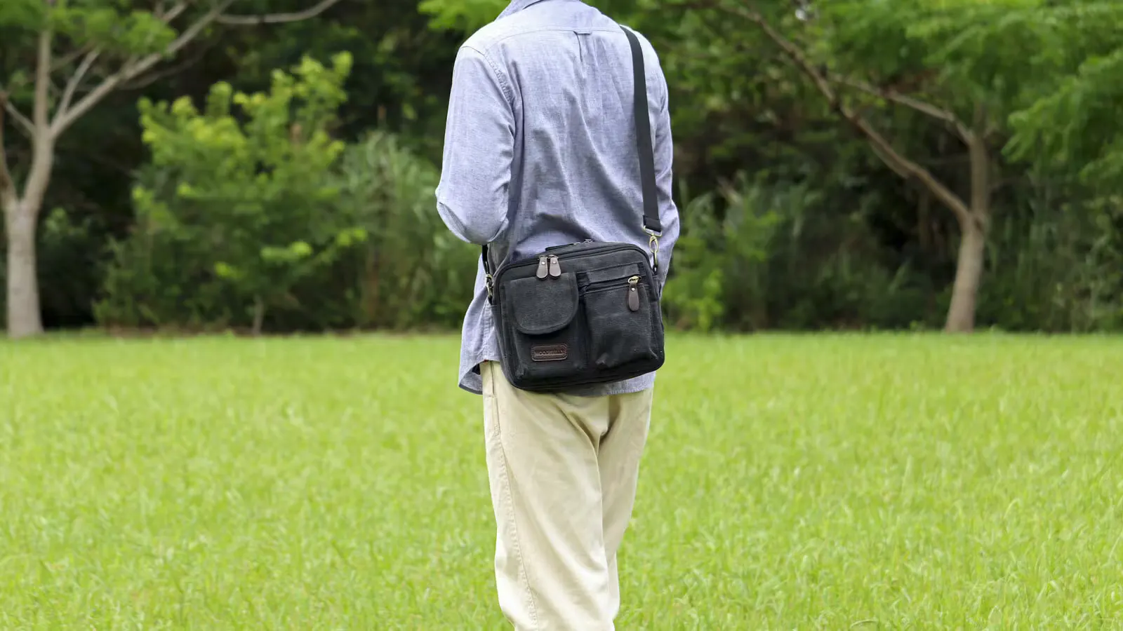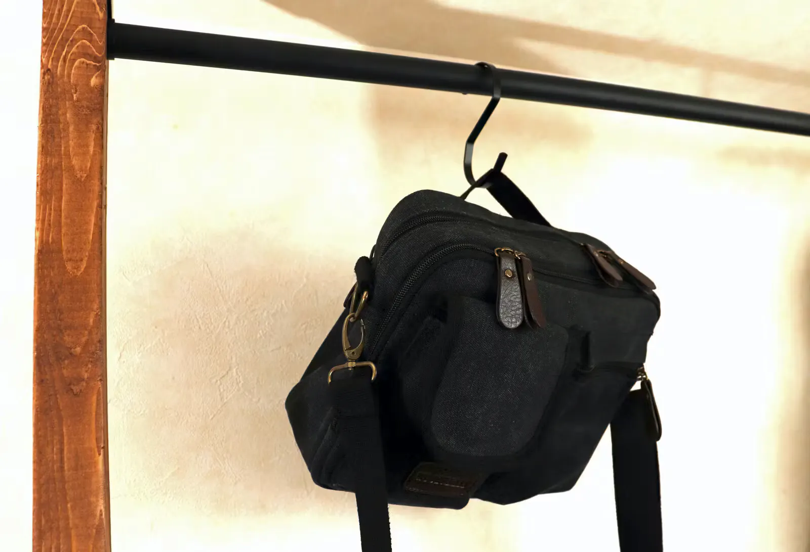 スマホ・ガジェットに即アクセス。分別整頓できる4層構造!軽量帆布ショルダーバッグ