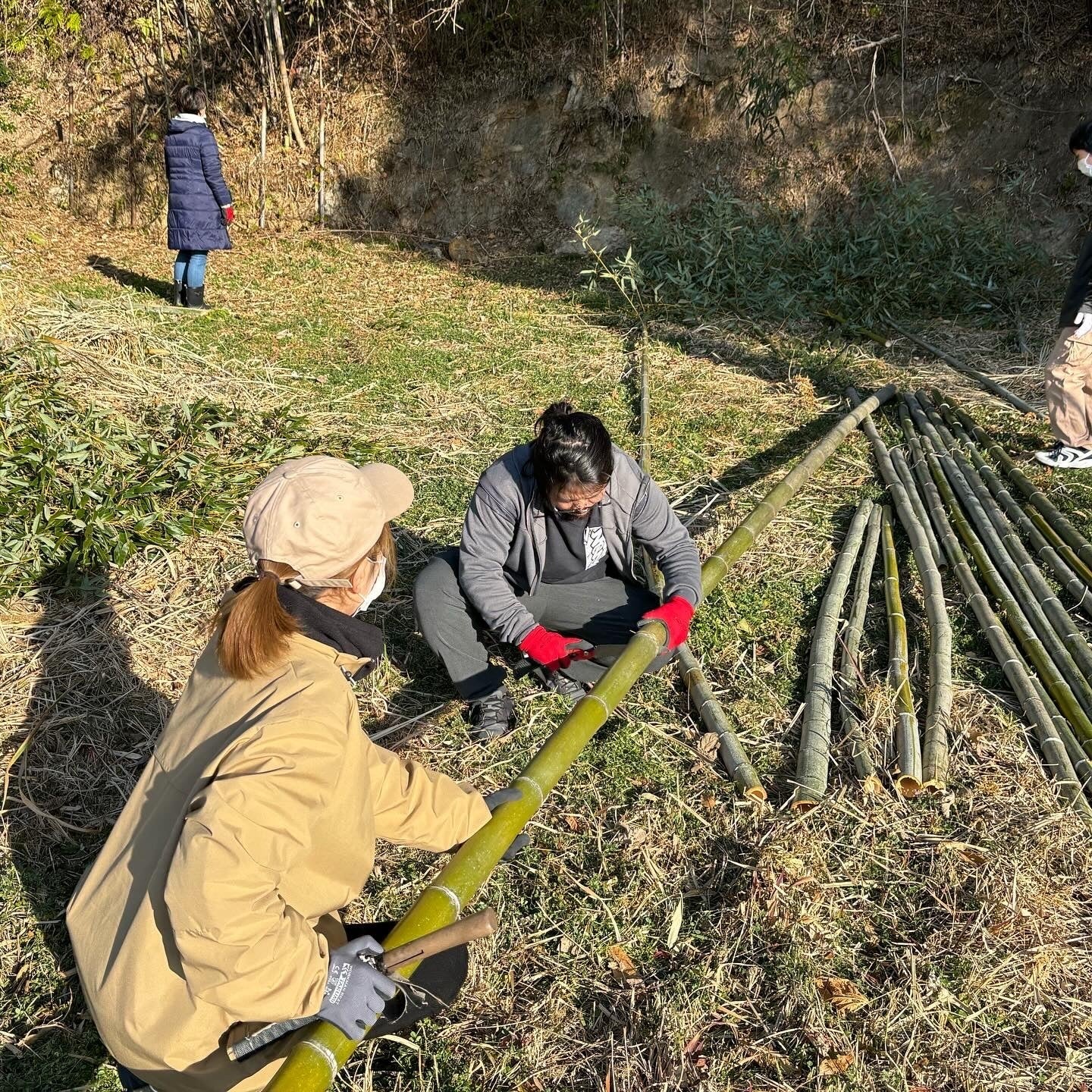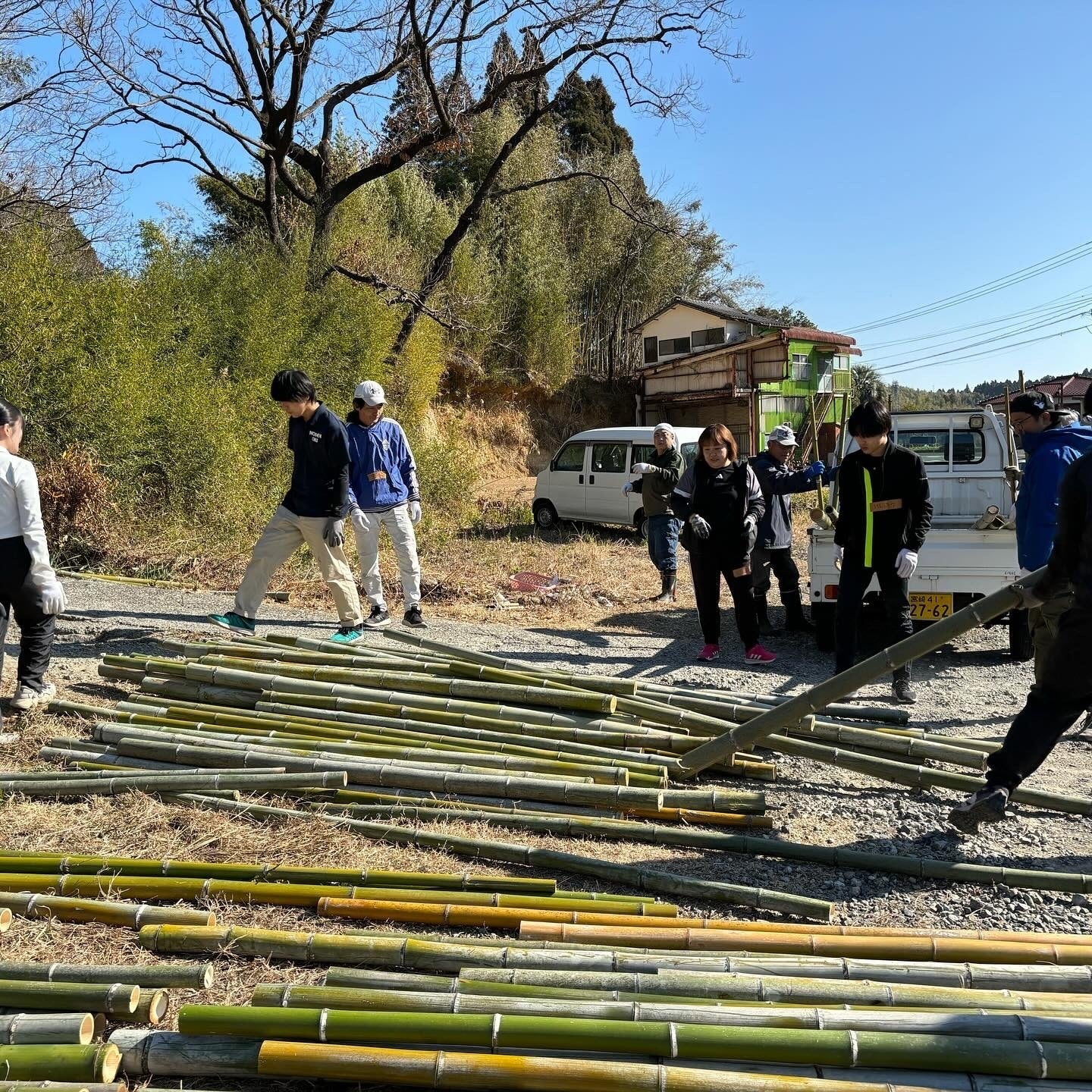 先日の竹採りは、昨年に夕刊デイリーの明るい社会賞(40年近く地域のために草刈りなど活動を行い)を受賞された甲斐孝さんのご指導のもと、ボランティアさん17名の方々に集まっていただき作業を行いました(⌯'ᵕ'⌯)´-