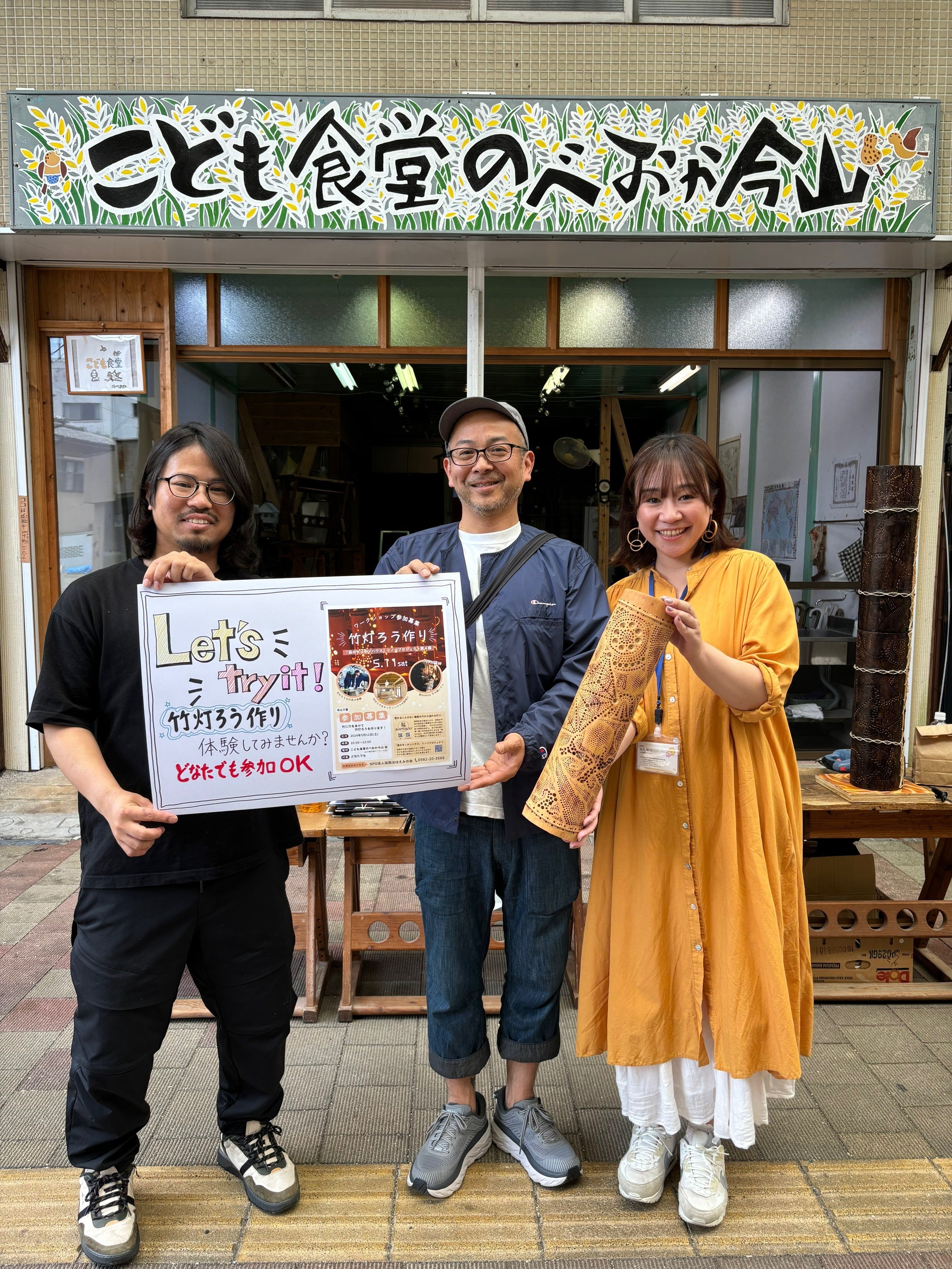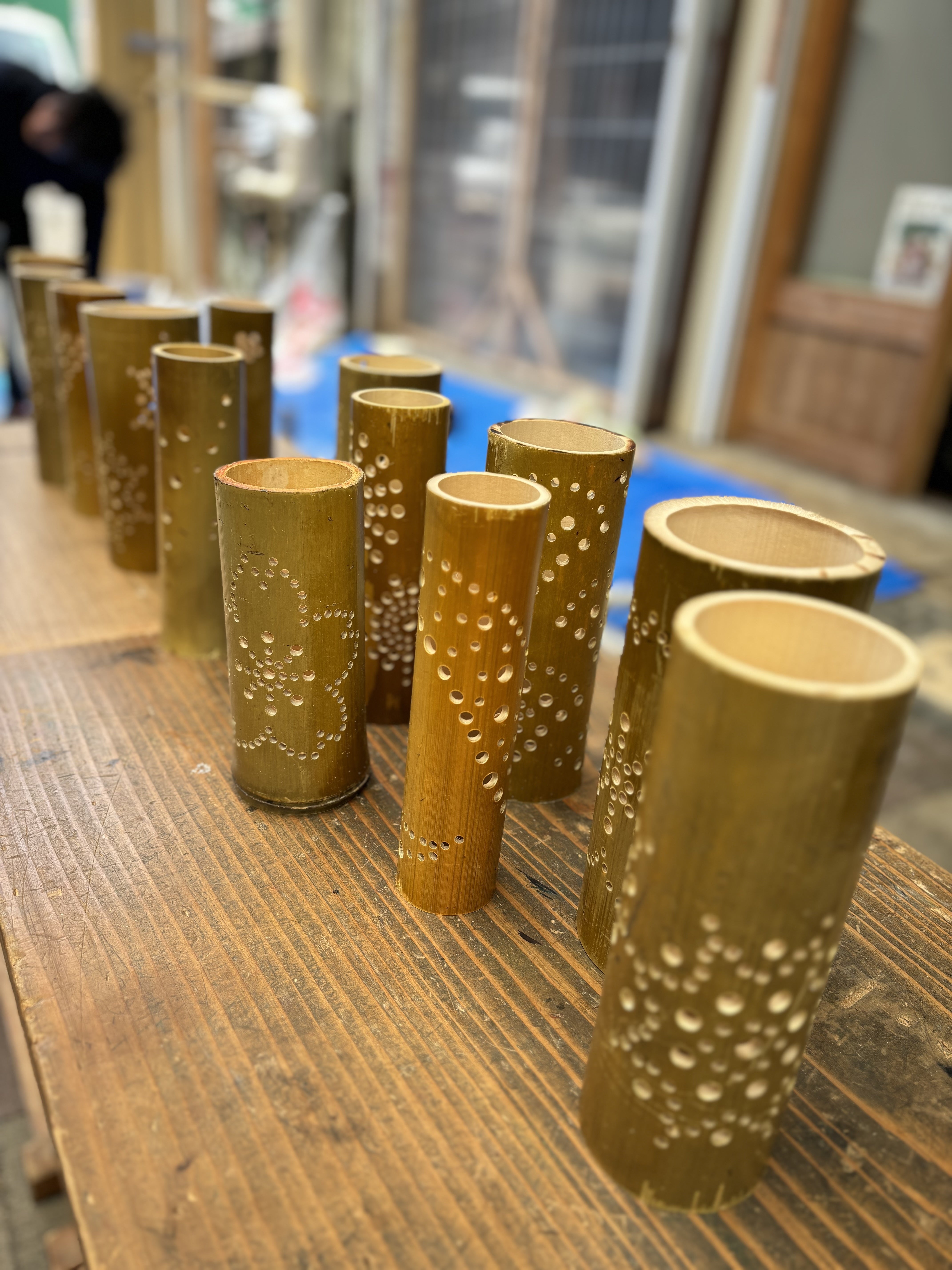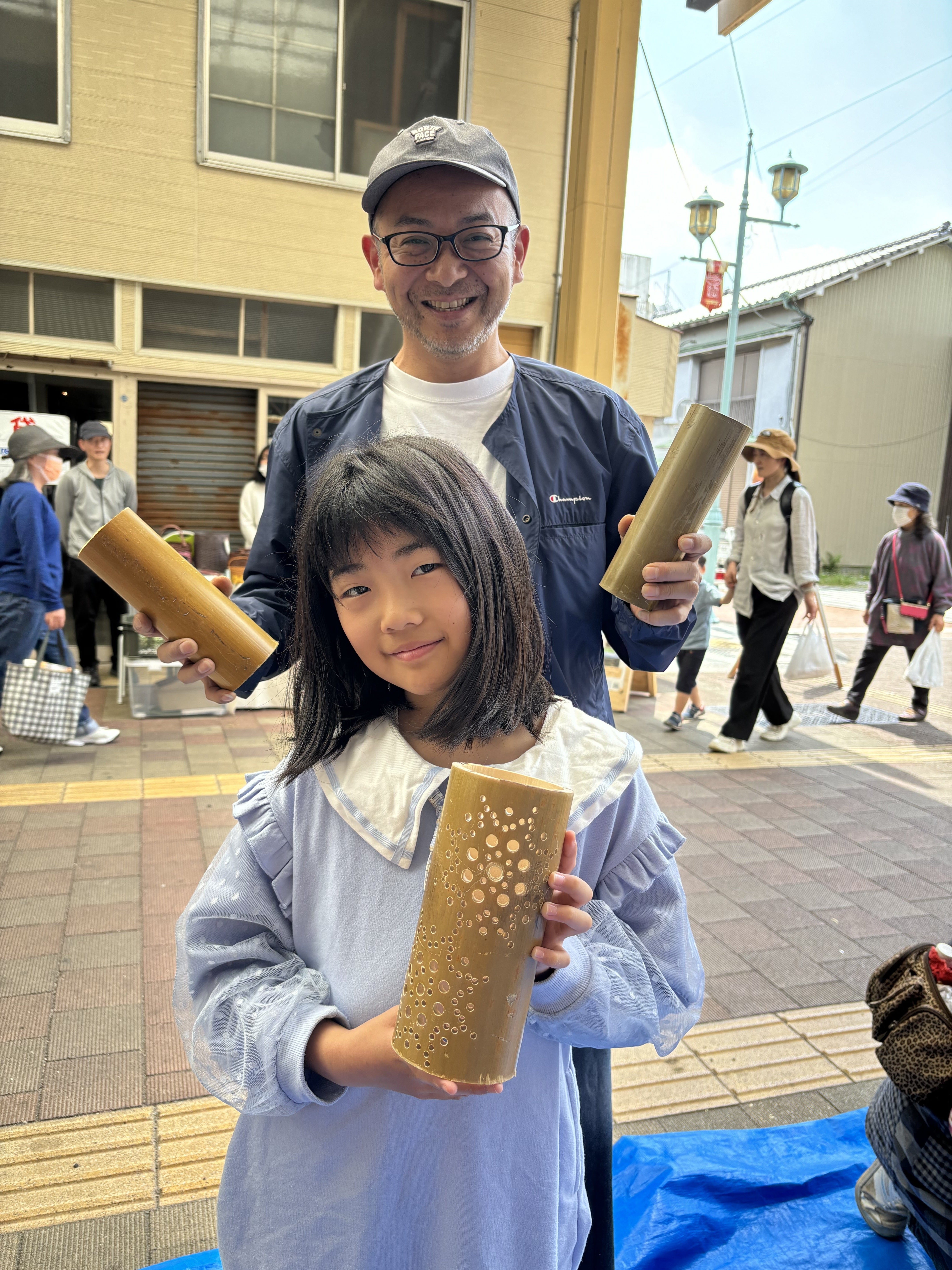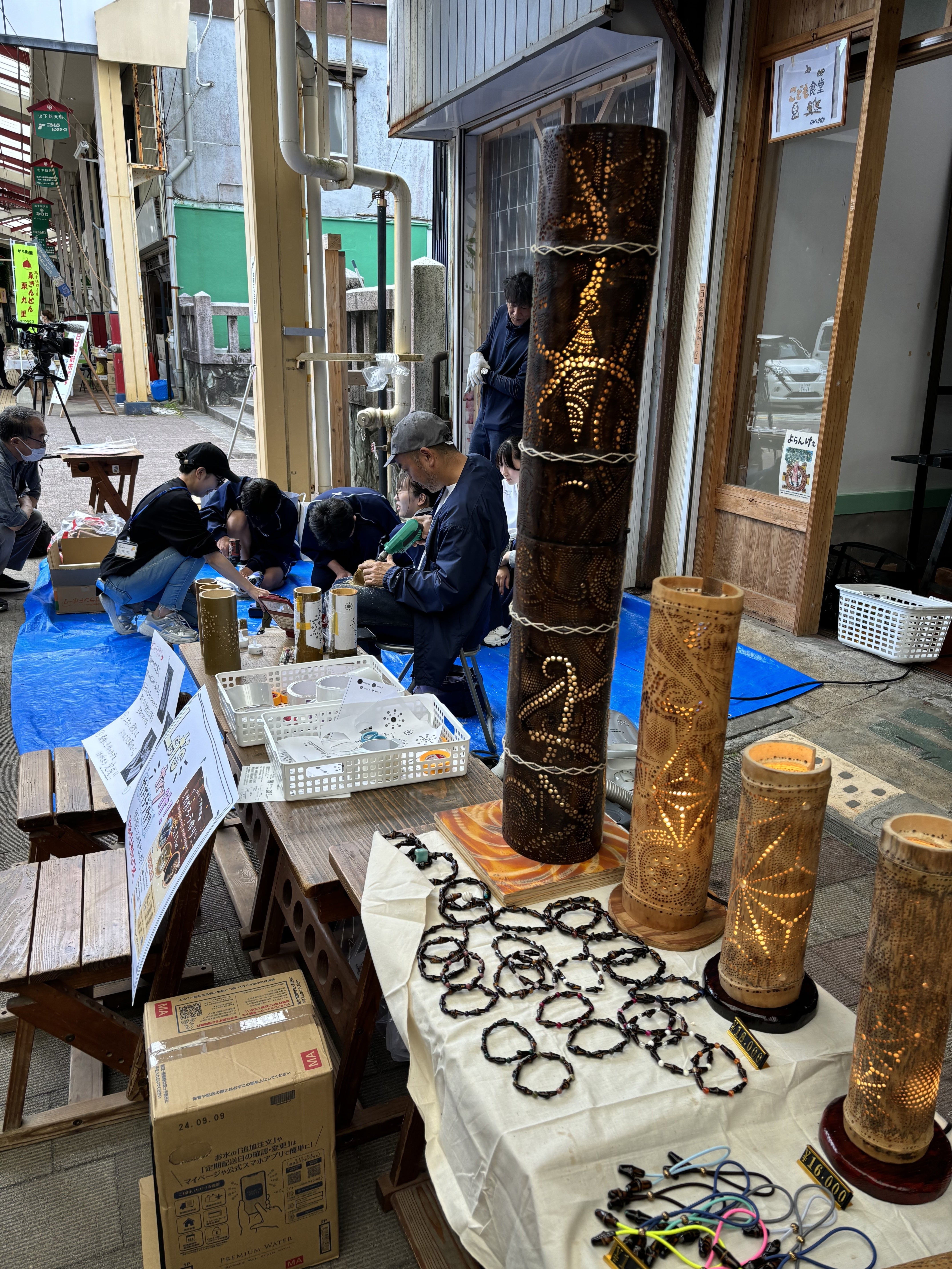 先日、山下新天街で竹灯ろう作りを行いました‼門前市ということもあり人通りが多く、竹灯ろう作りにもたくさんの方が覗いてくださり、とても賑やかなワークショップになりました(*ˊ˘ˋ*)