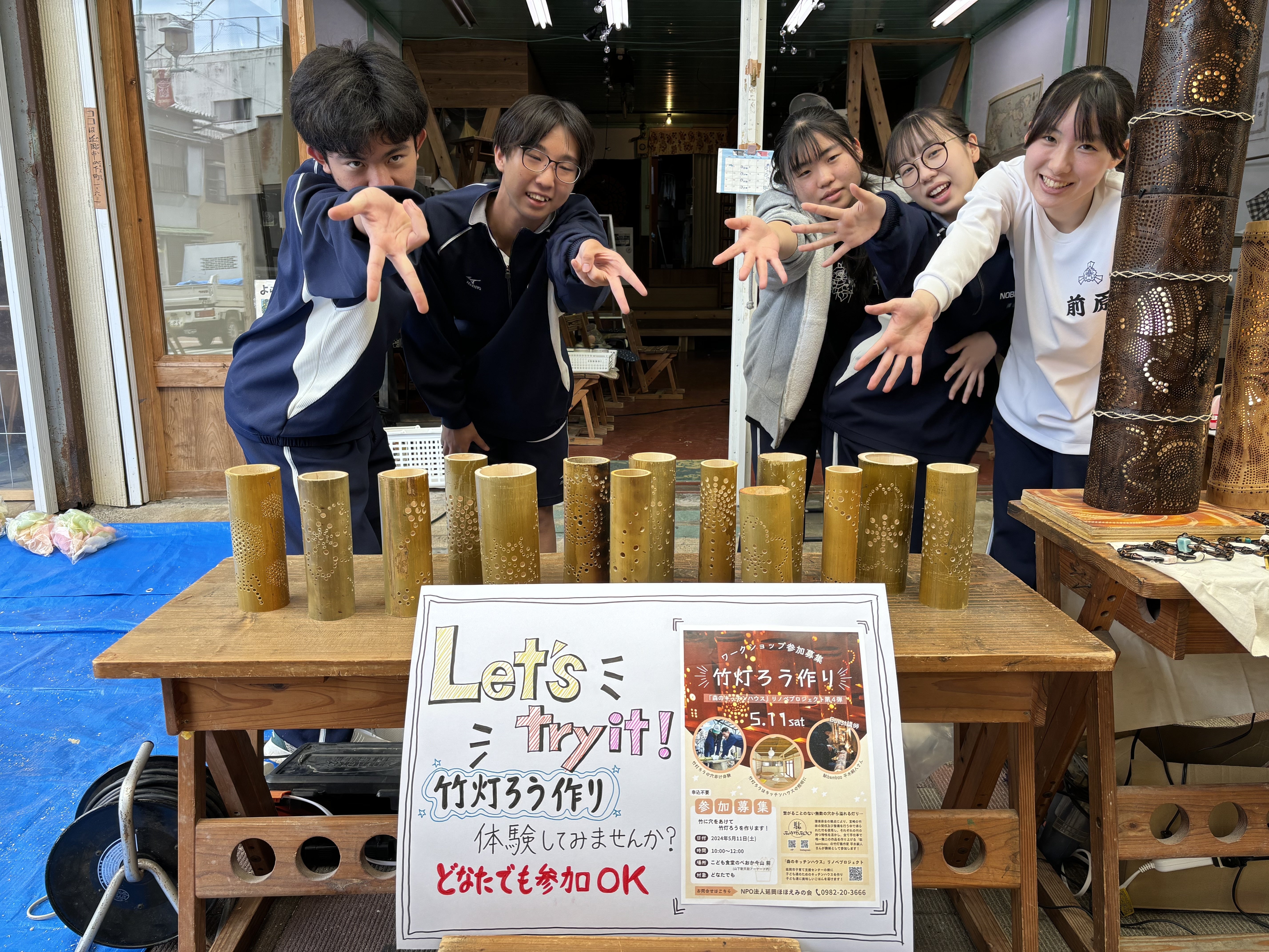 延岡高校生もボランティアで参加してくれ、たくさんの竹灯ろうを作ってくれました!(職人レベルの学生さんもいてすごい盛り上がりました)