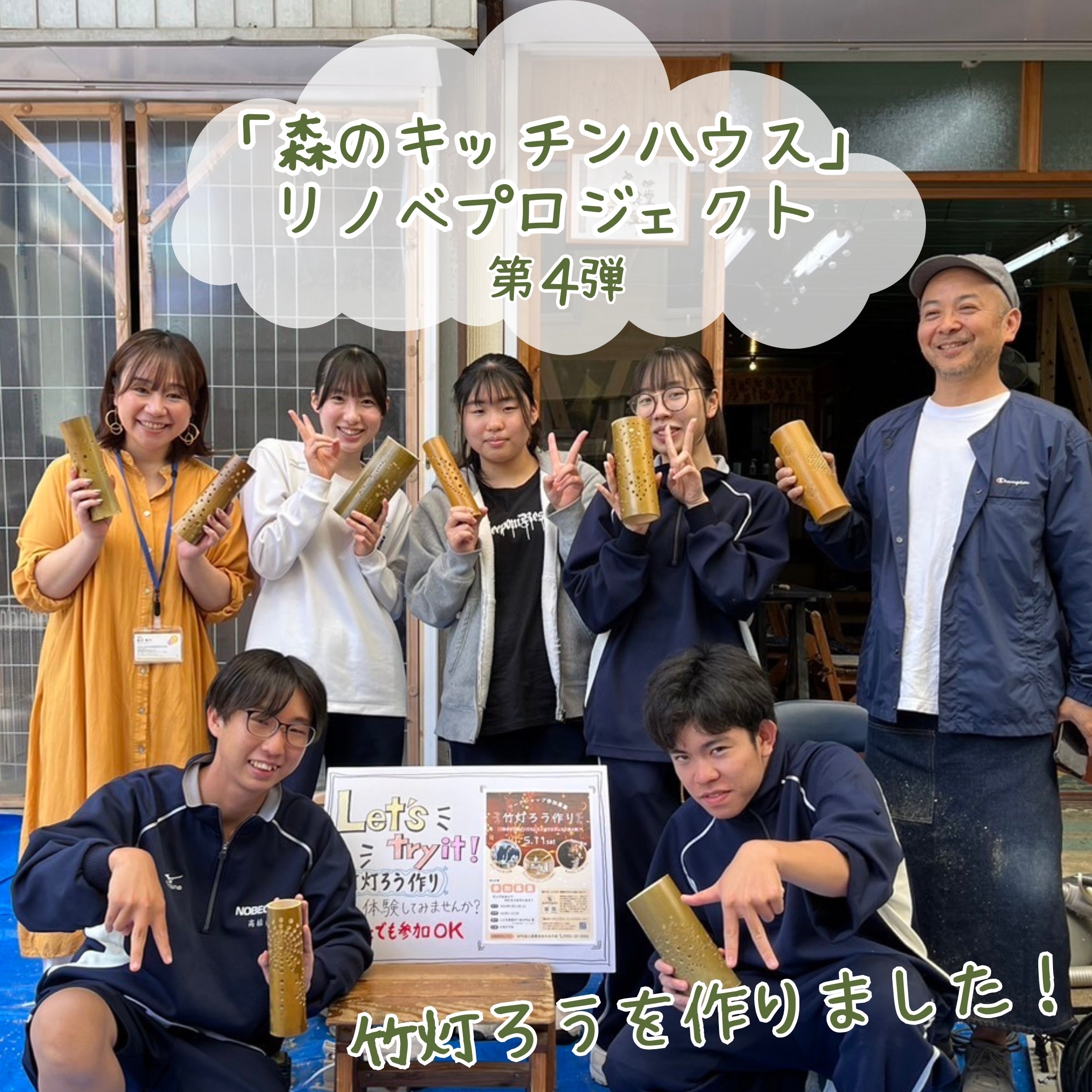 皆さんが作ってくれた竹灯ろうは、もうすぐ山月町に完成する子ども達の為の「森のキッチンハウス」の内装に使わせていただきます✩.*˚