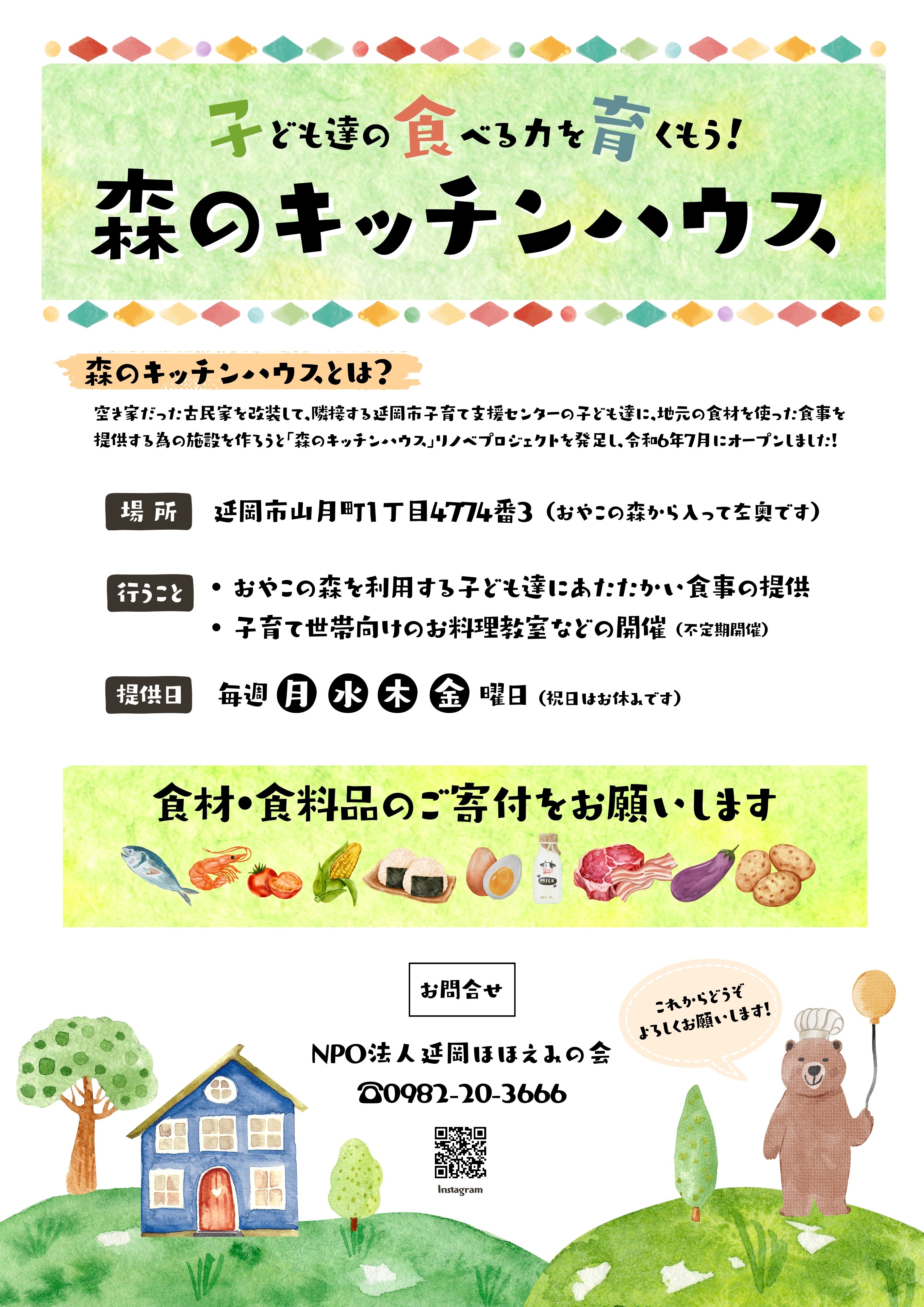 これから「森のキッチンハウス」では、隣接する子育て支援センターおやこの森を利用する子ども達に出来たての温かい食事を提供していきます(⌯'ᵕ'⌯)´-