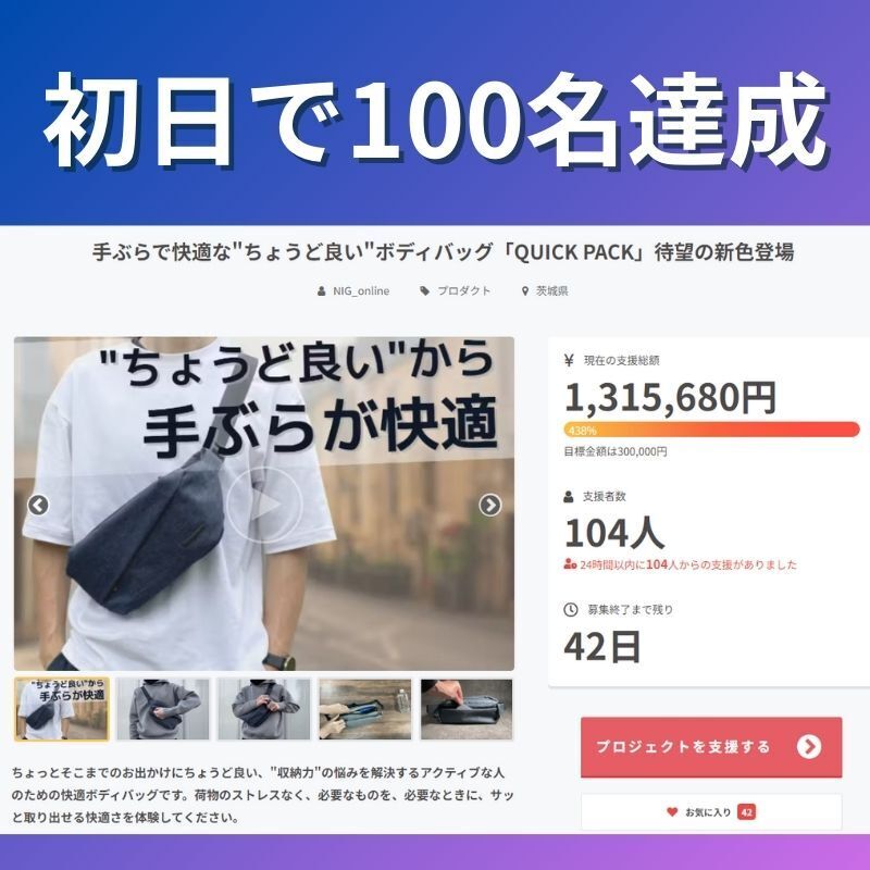 初日で目標を超える100名のご支援をいただきました。