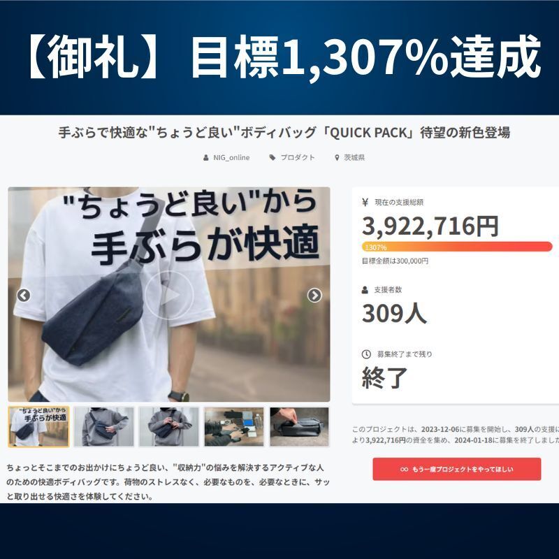“ちょうど良い”から手ぶらで快適になる週末お出かけボディバッグ新色先行販売プロジェクト