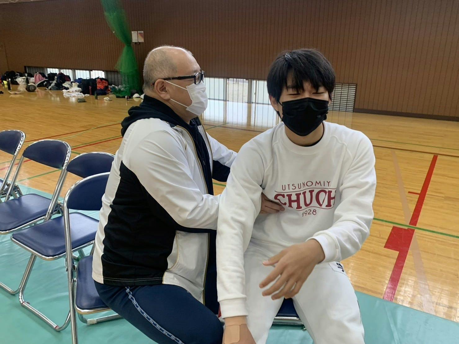 ※上三川フェンシングクラブの相場代表と東日本大会で3位になった際の記念撮影する菊池選手