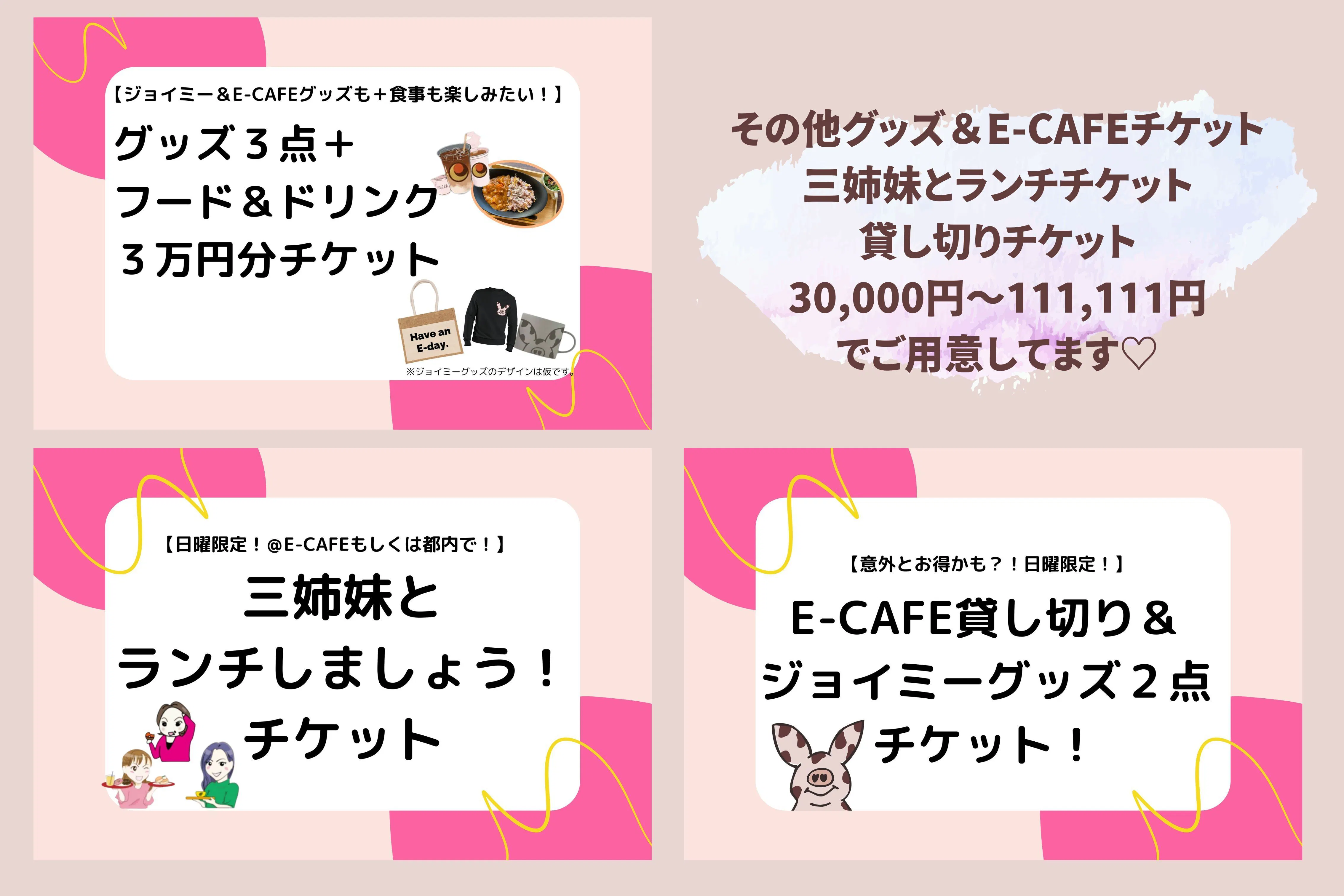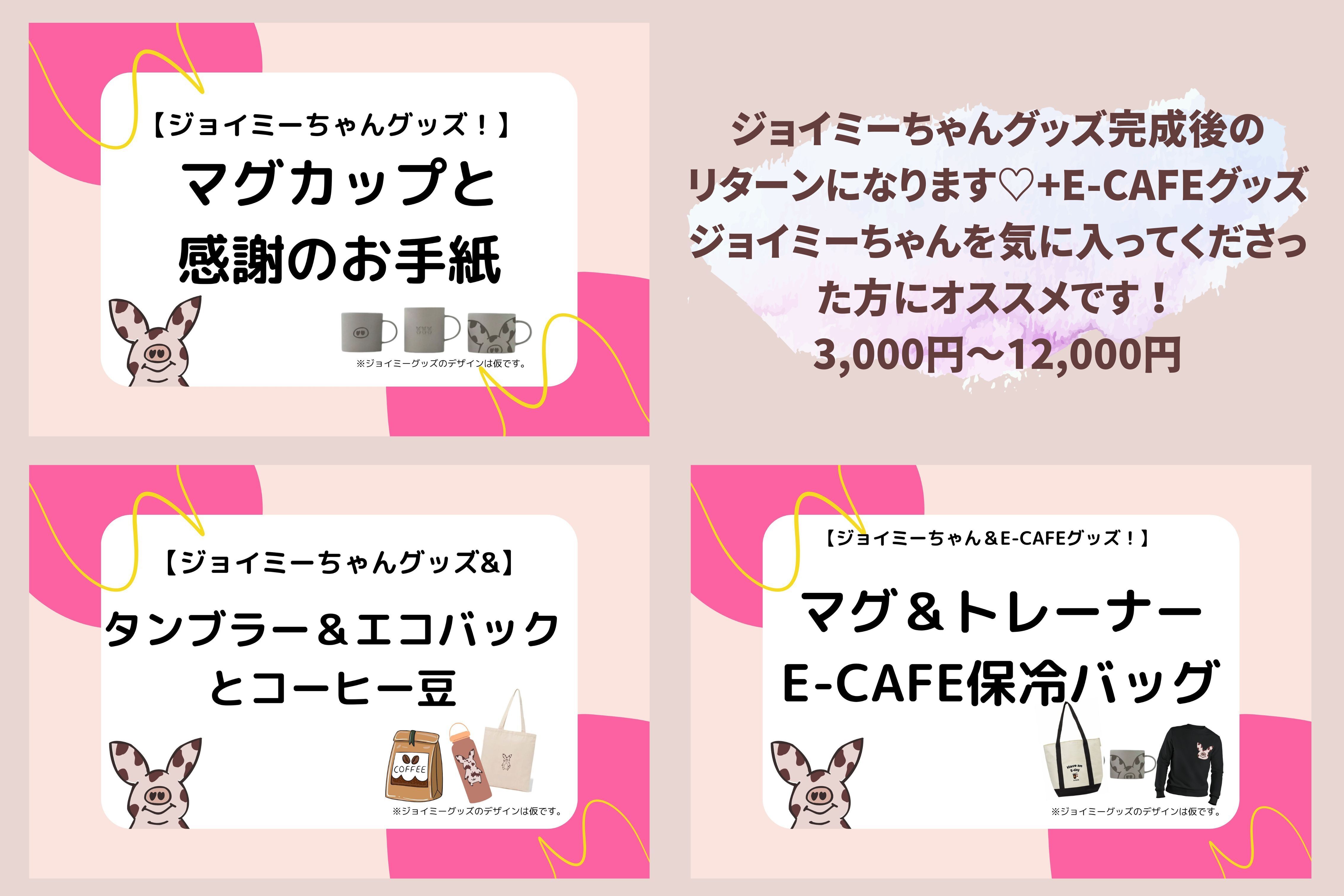「いい(良い)カフェ」でありたいという思いも強くE-CAFEという名前になりましたが、今1年以上続けて思うことは「世界一いい常連さんに恵まれたカフェ」であるということです。これだけでも感謝の気持ちでいっぱいです。でも!!まだまだ、これから!!E-CAFEを盛り上げて、長~く地域で愛されるお店を目指し、みなさまと一緒に歩んでいきたいです。その上で「ジョイミーちゃん」というキャラクター、そしてそのグッズを共につくってくれる仲間がいてくれたら心から嬉しく思います。どうか、ご支援いただけたら嬉しいです。