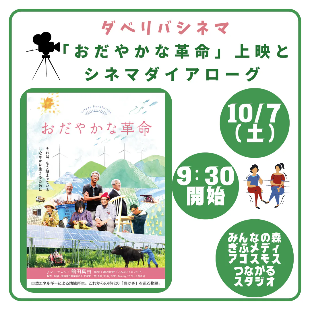 映画を見て、そのまま帰るのではなく、映画を観終わったあとに生まれた思いをアウトプットする。強い主張や討論の場ではなく、映画を鑑賞して生まれた想いを語り、他の参加者の話を聞き、おしゃべりを楽しむ。それだけです。