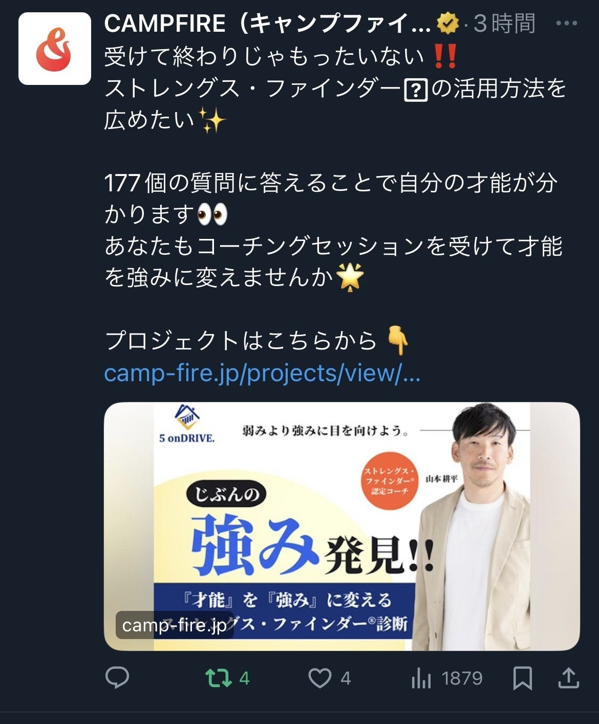 CAMPFIRE公式X(旧Twitter)にも当プロジェクトを取り上げていただきました!
